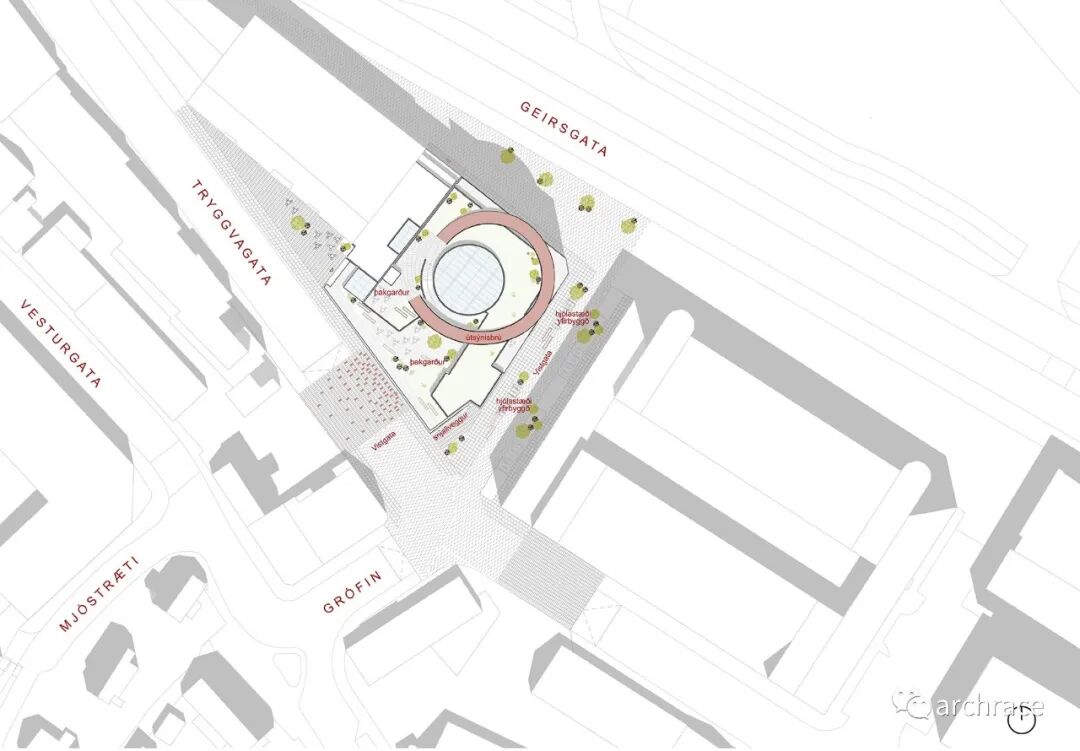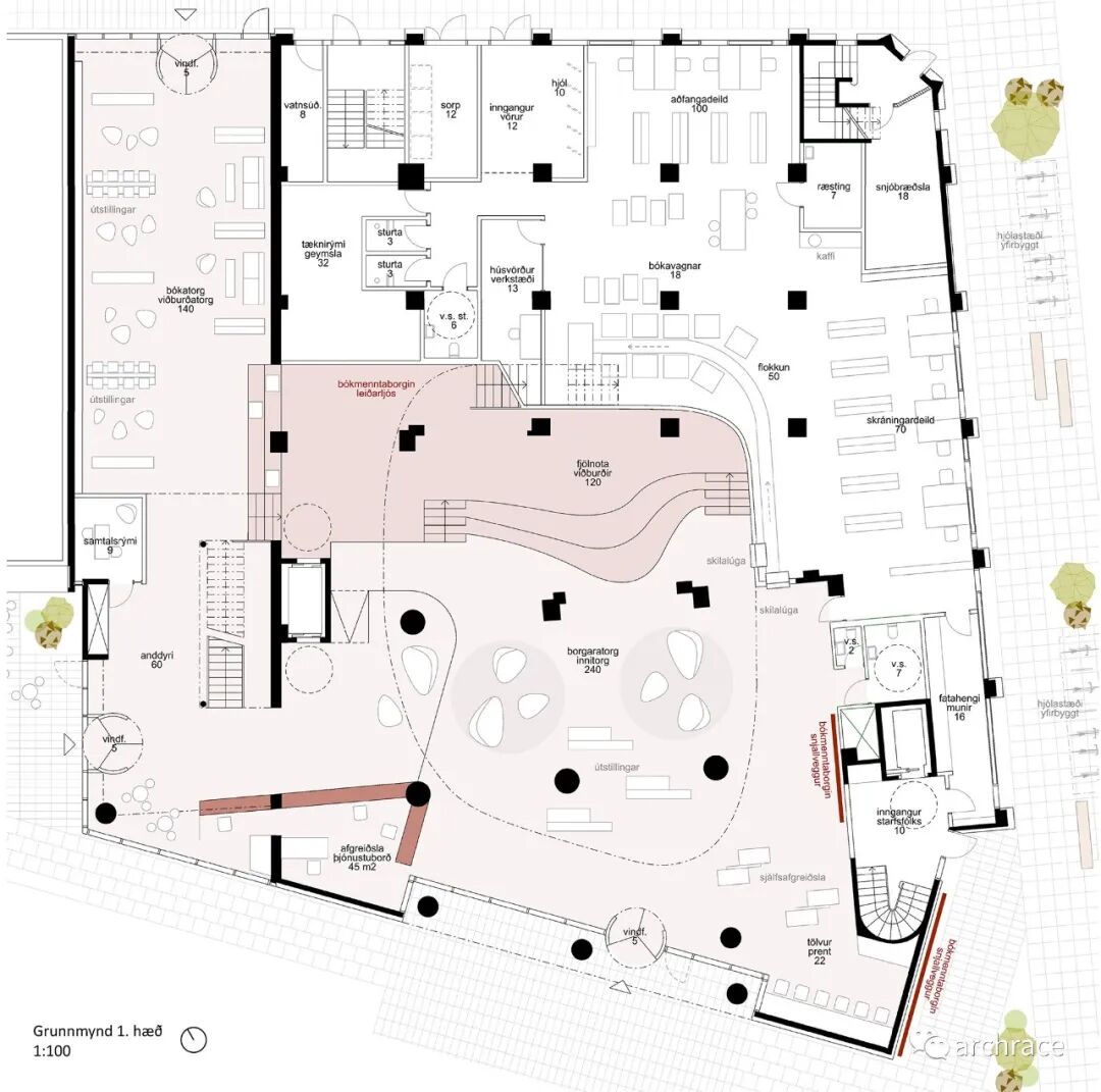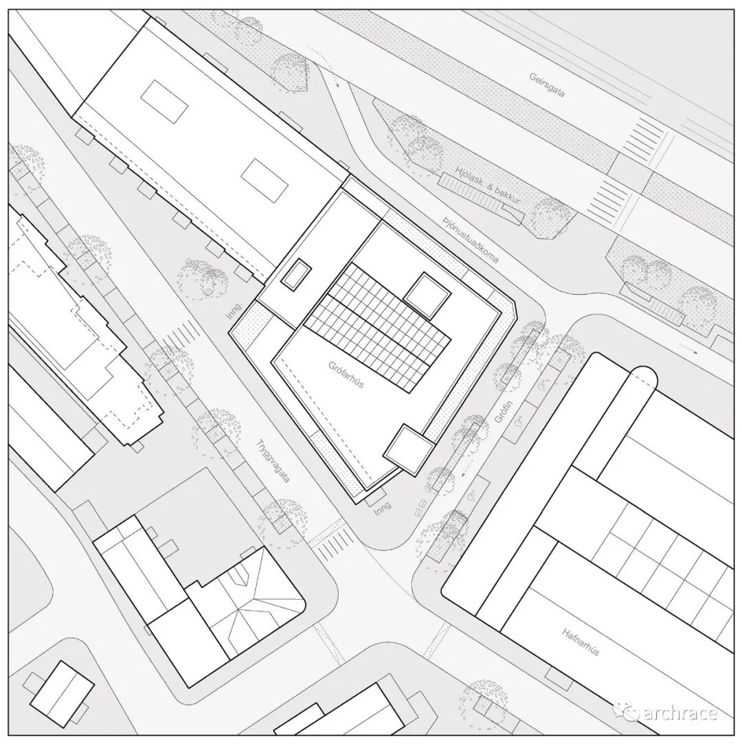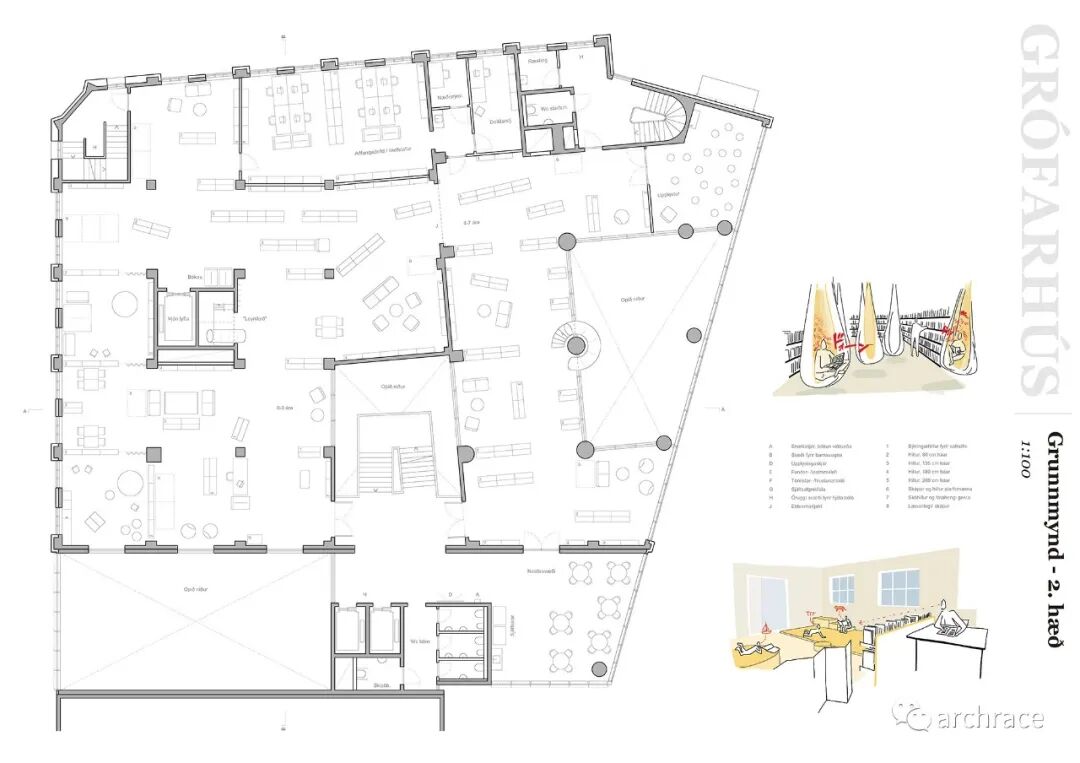 原雷克雅未克的中央图书馆位于一座前海港仓库内,虽然建筑老旧且规模不大,但是该机构所处的位置在雷克雅未克市内十分引人注目,因此,图书馆决定对现有建筑进行翻新和现代化改造。