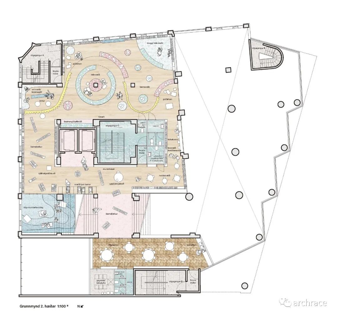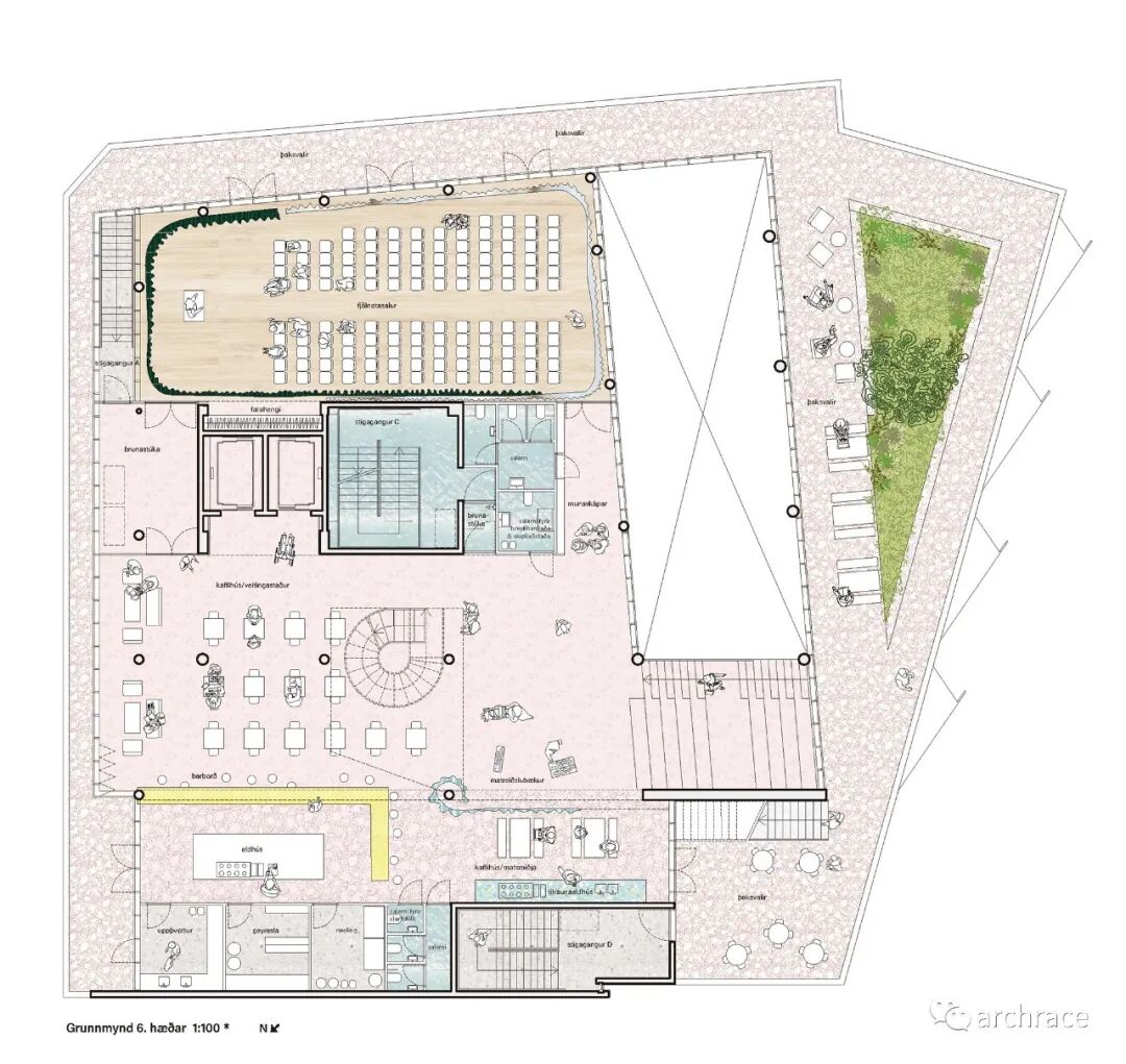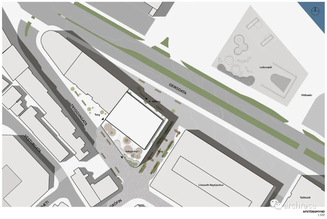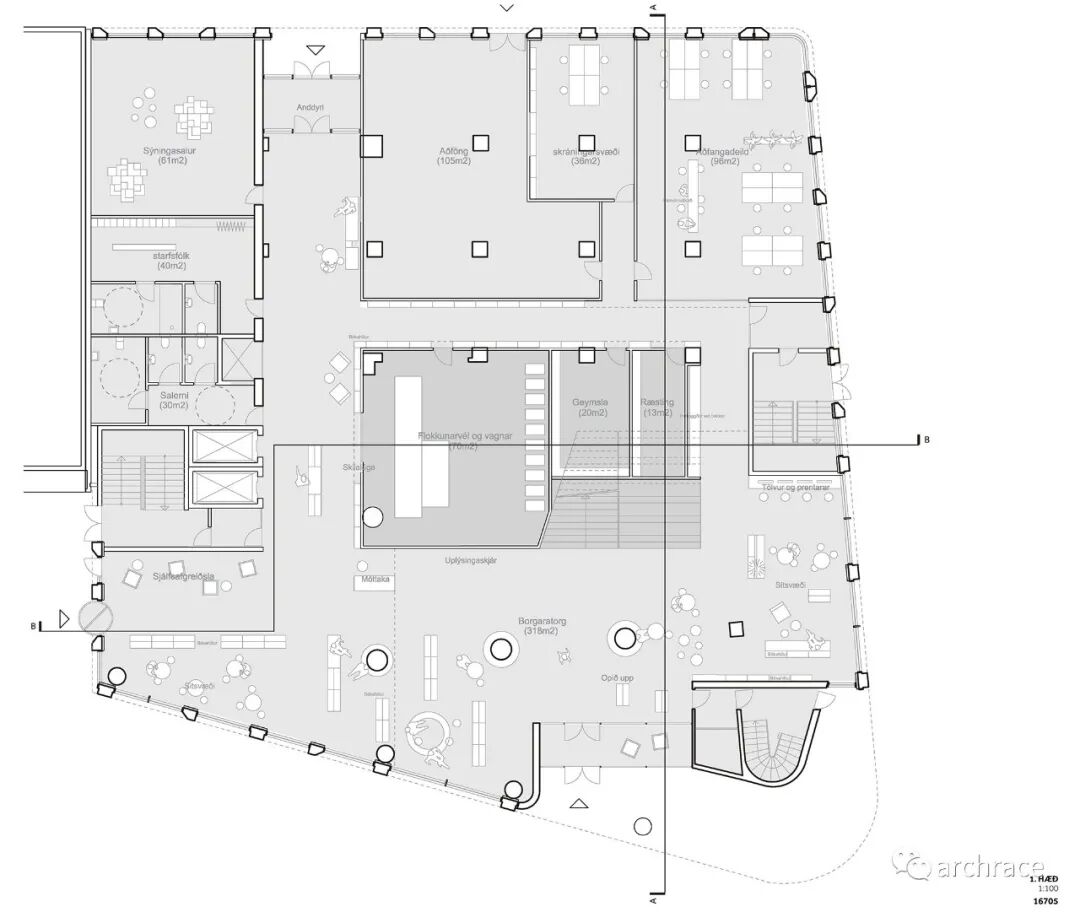 原雷克雅未克的中央图书馆位于一座前海港仓库内,虽然建筑老旧且规模不大,但是该机构所处的位置在雷克雅未克市内十分引人注目,因此,图书馆决定对现有建筑进行翻新和现代化改造。