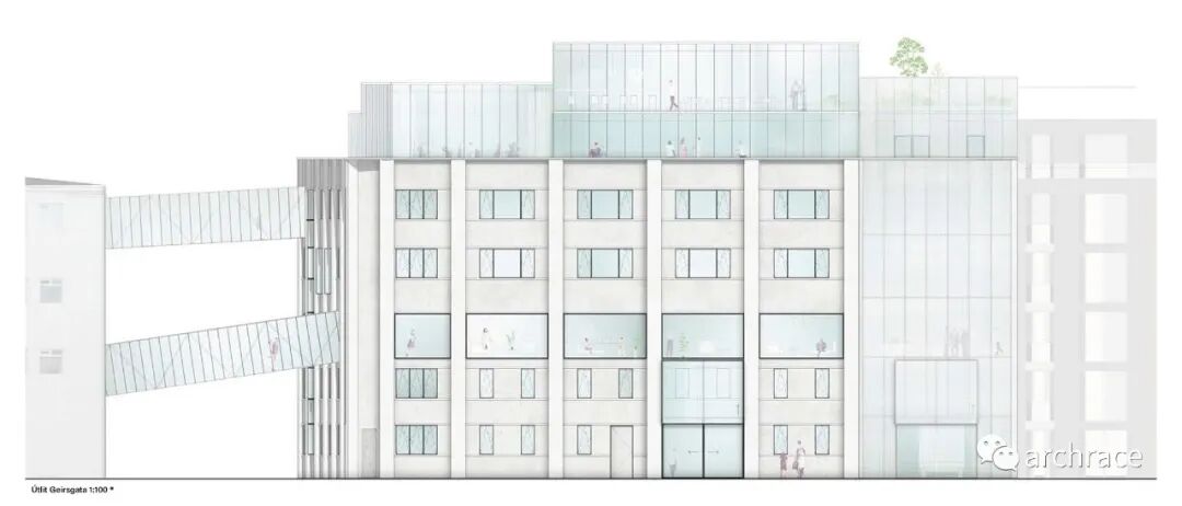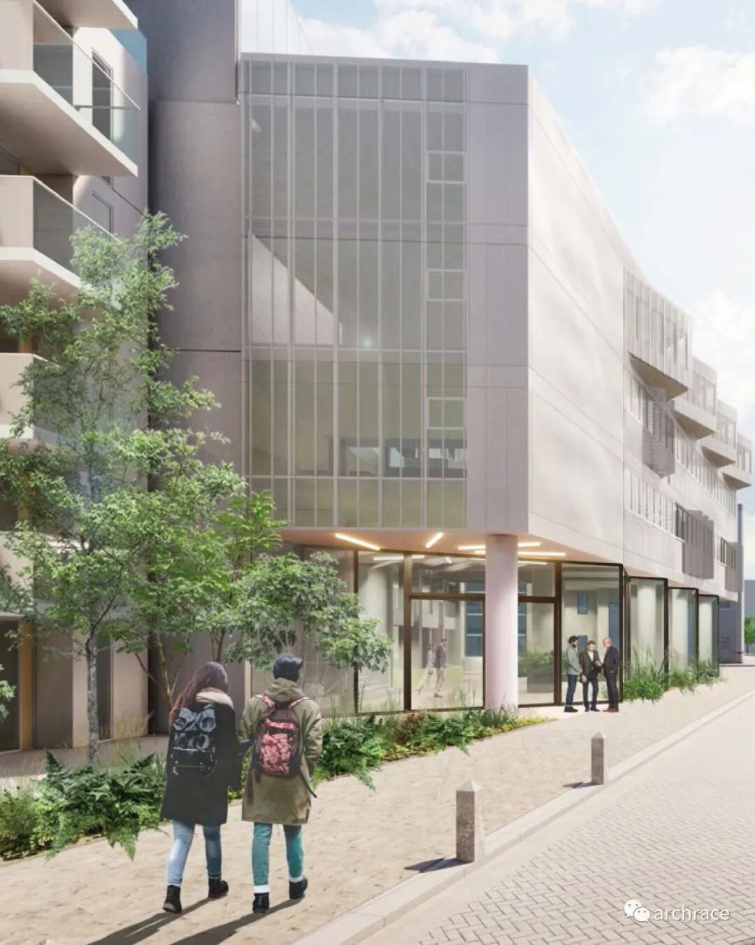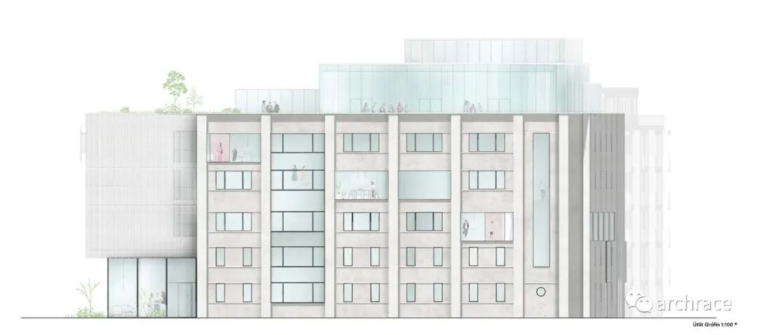 立面将在尊重建筑历史的基础上进行翻新,并根据 BREEAM 要求使其更具可持续性。新的隔热保温材料将在室内重新使用。一层的绿色凸窗一直延伸到外面,作为内外之间的过渡,创造了一个吸引人的立面效果。