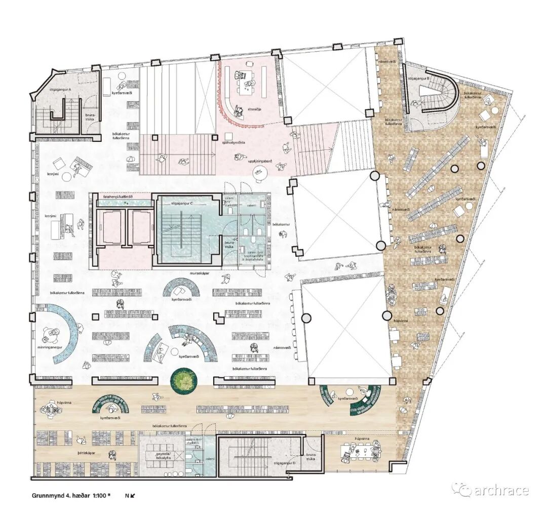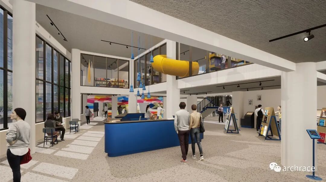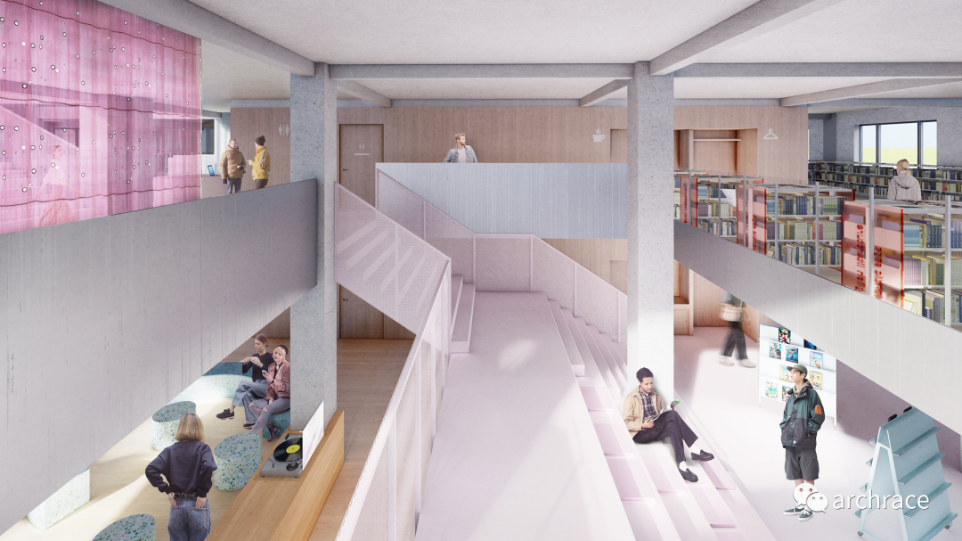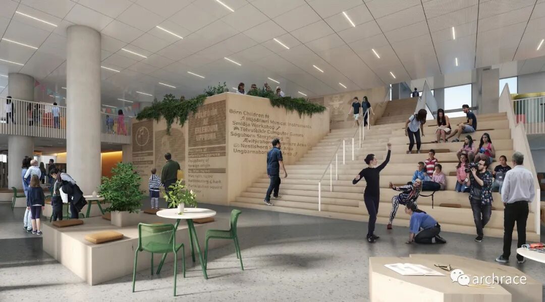 在设计团队的愿景中,图书馆将以简单和吸引人的方式提供的一切服务,这一点至关重要。这与图书馆的国际发展相一致,图书馆的角色和相关的空间功能正在从单纯的知识机构转变为充满活力和启发灵感的“第三场所”。
