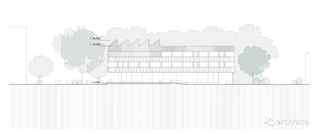 艺术学校是孩子们接受教育的文化汇聚点,也是普通大众接触文化环境的场所。我们的设计尊重学校场地周围的现代都市主义风格建筑,并充分利用该地区成熟的绿色植物。