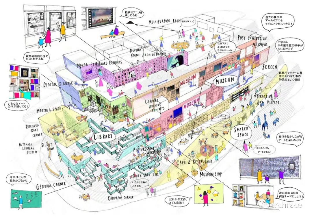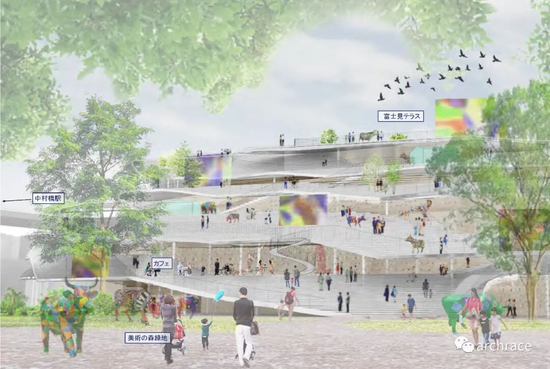 获胜提案受到了练马区的遗迹富士塚的启发,是一个具有很高创意,可以向全球展示练马区文化语境的方案。虽然整体形式仍有推敲的余地,但无论是对当地人,还是对外来游客来说,新的美术馆和图书馆建筑都是一个新的名胜。