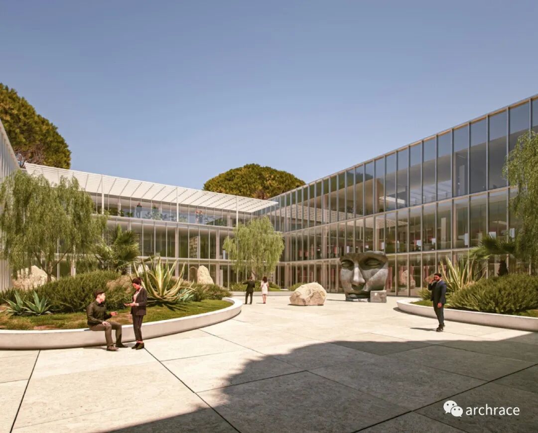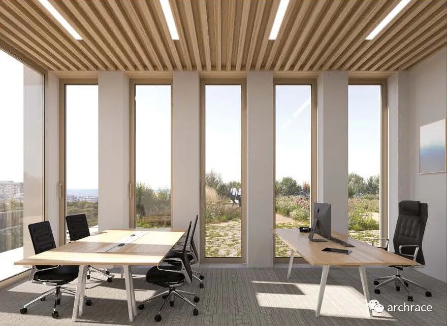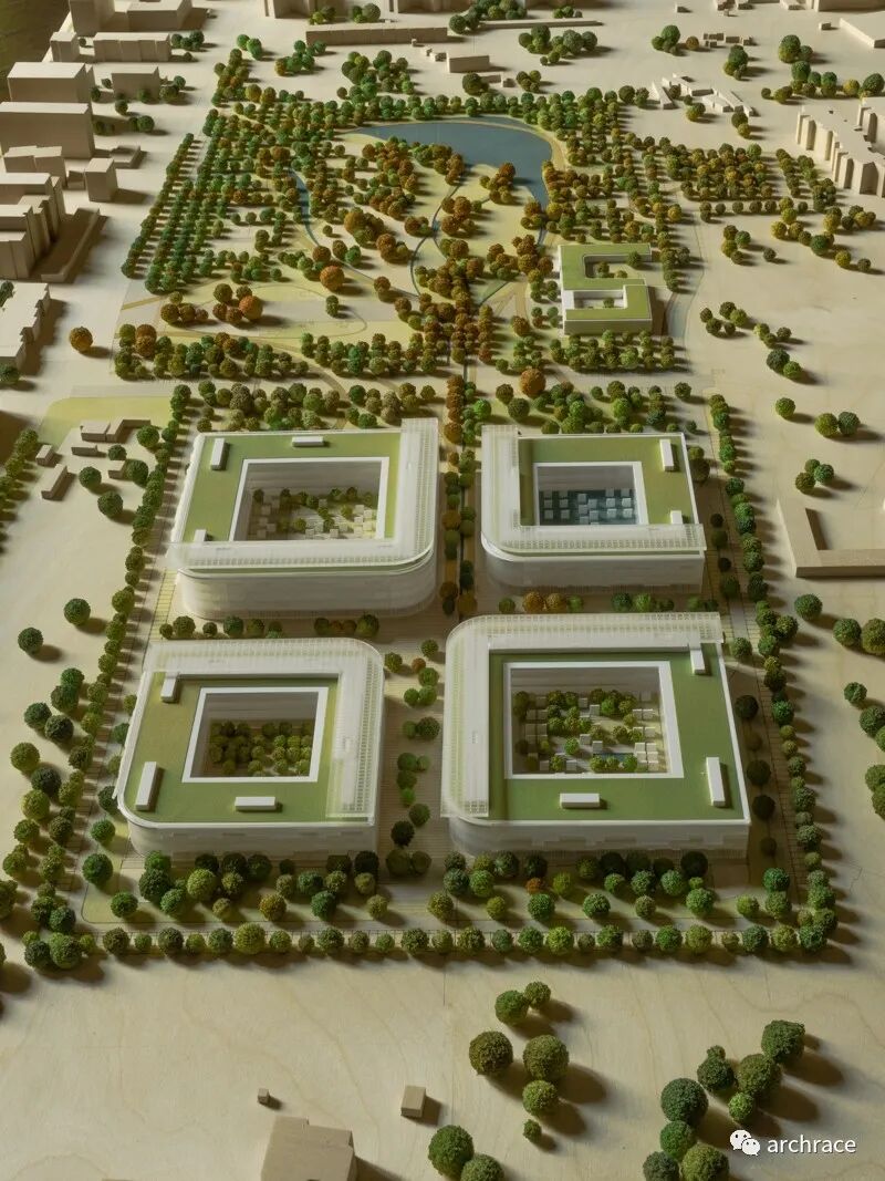 在现有营房占地近 150,000 平方米的总面积中,新司法办公大楼的建筑占地仅 37,000 平方米,公园的绿化面积将达到 105,000 平方米,其中 7,500 平方米专用于人工湖。如果考虑到屋顶和绿色庭院,绿化面积实际上更大。自然与建筑在一种关系中保持平衡,植被的存在几乎占据了整个项目表面。