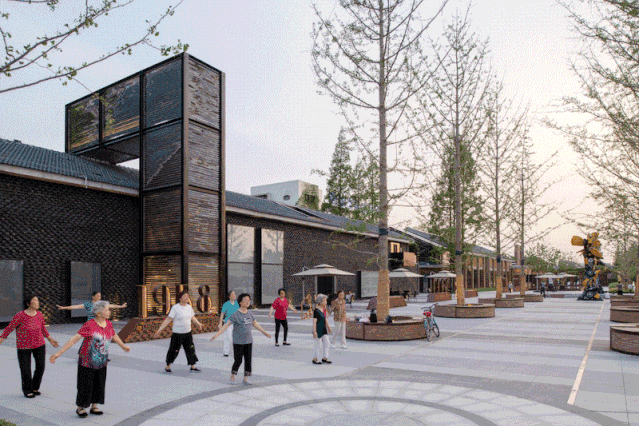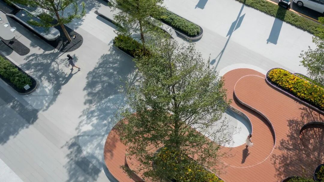 项目是一个人流密集但缺少(Occupiable Space)停留性的城市街角。前期设计将老上海里弄式街区尺度融入到场地之中,通过塑造上位规划特色轴线中的头部公共空间,模糊了城市与社区的空间关系,构建了全龄参与的共享开放街区,孵化了商业氛围及生活温度。