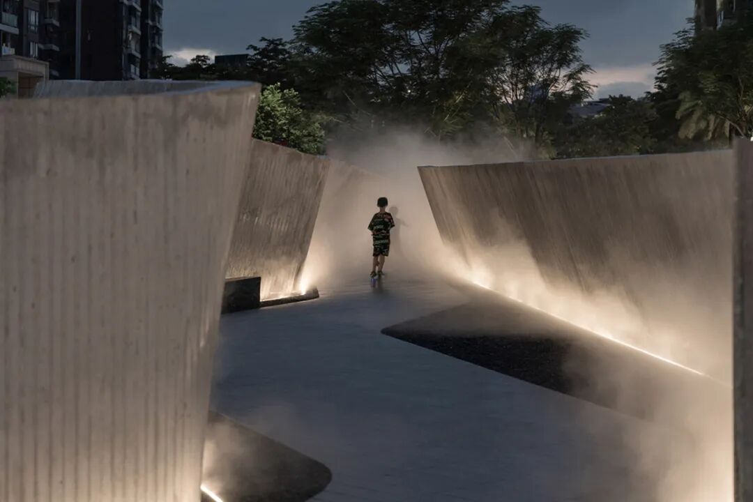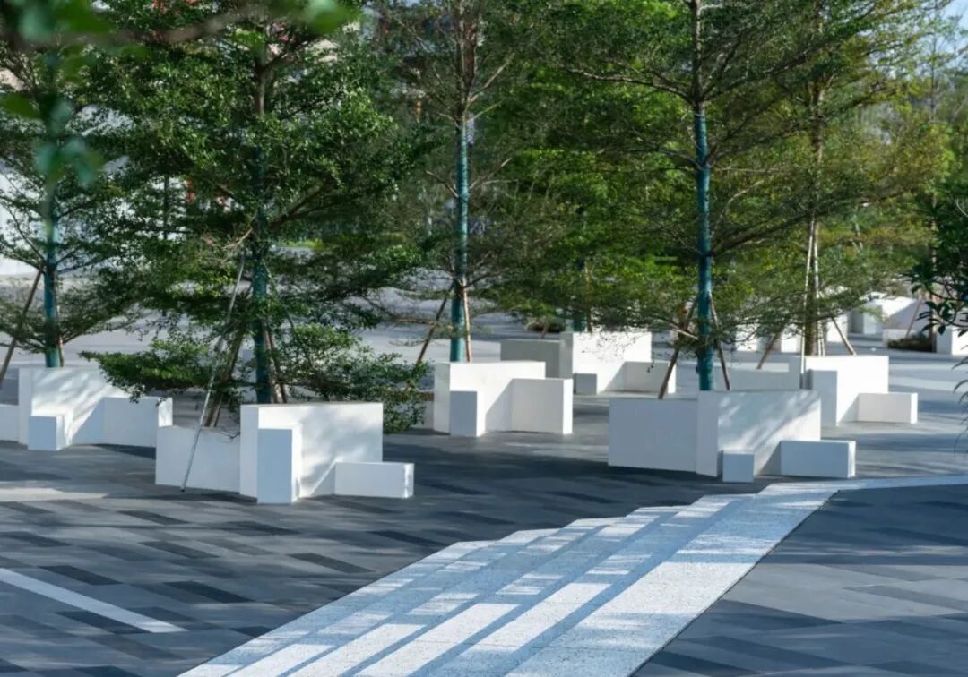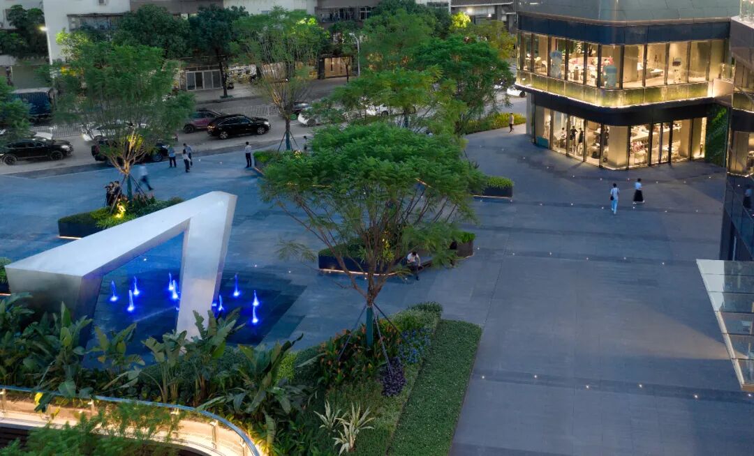 网红商业成为一种趋势后,一直致力于跳脱出周边的环境,成为打卡目的地。商业景观也是城市景观的一部分,在崇左华润万象汇项目的景观设计中,我们尝试让商业景观与城市环境的边界消失,融为一体;尝试让更多市民广泛的参与进来,使其成为城市公园的一部分。