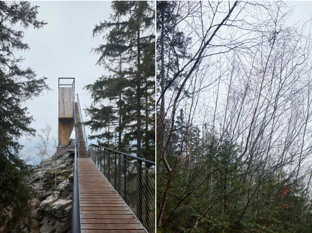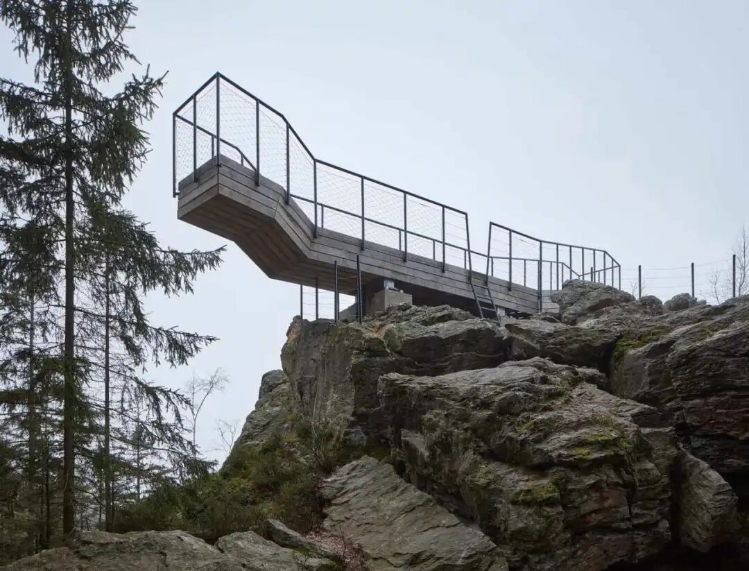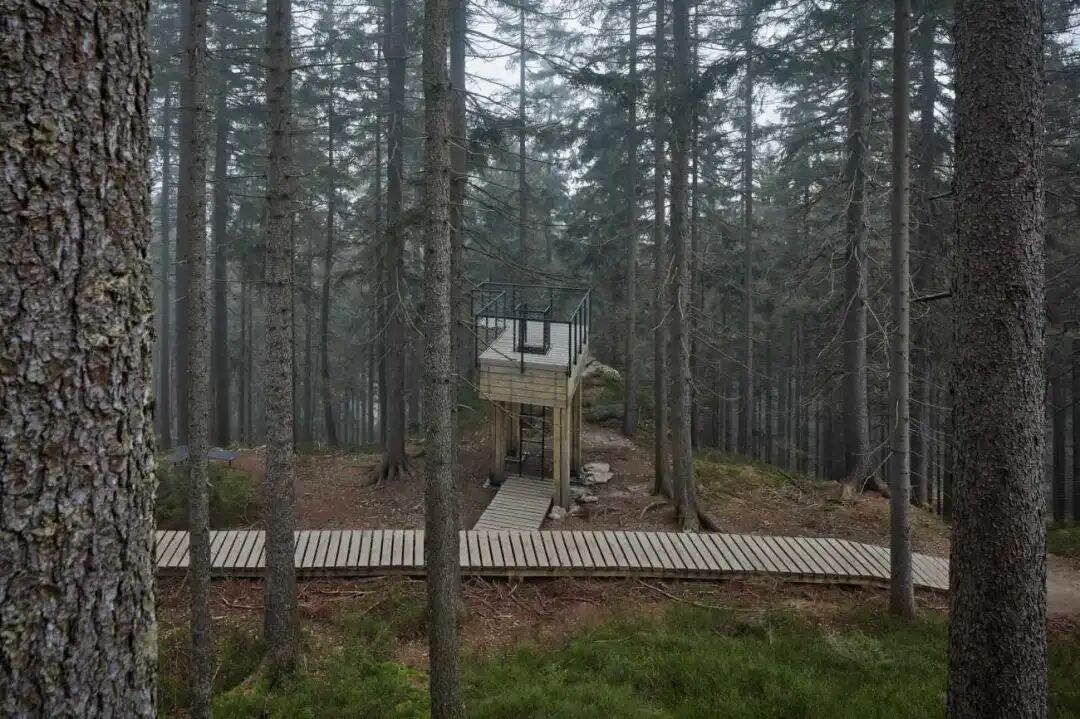 穿过人行天桥到达矿工瞭望台。他站在一个高高的悬崖上,当地登山者称之为K5。他的形象对Rokytnice的采矿业历史进行了借鉴。作为Rokytno的象征,他是巡逻队的最后一员。庄严的身影凝视着Jizera山谷。一个陡峭的楼梯将你带到一个视野壮丽的瞭望台。如果你仔细聆听,你甚至可以听到波光粼粼的河水从Polish边境的山区穿过荒野山谷。坐在台阶上,看着河上山峦的地平线,景色十分优美。