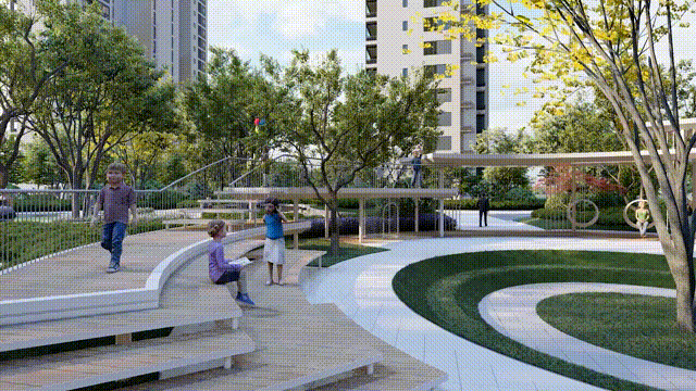 不同层次空间的有机组合和交互渗透、不同区位的居民,都能就近享受高颜值且实用性高的景观空间。