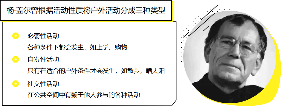 然而目前社交性活动并没能有效地在社区中发生,要促成社区的社会性活动,就需要创造人们必要性活动和自发性活动的条件。