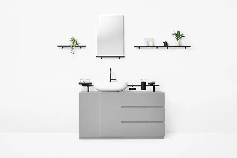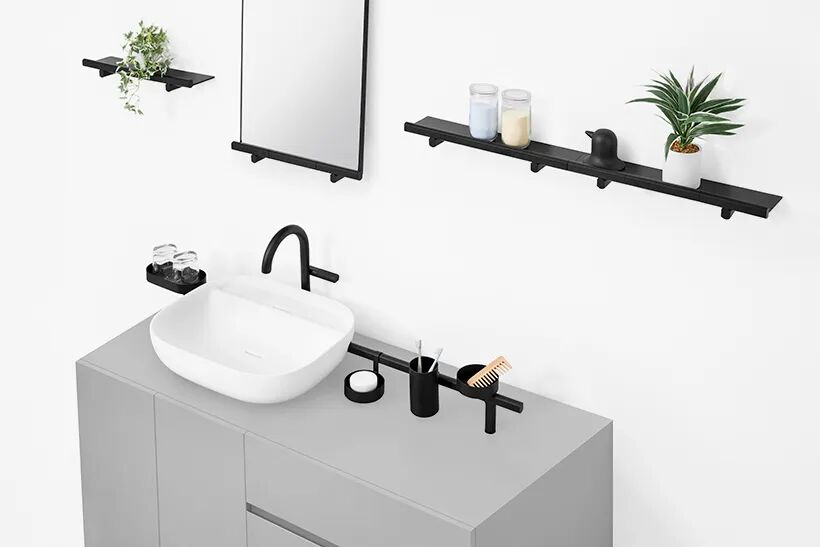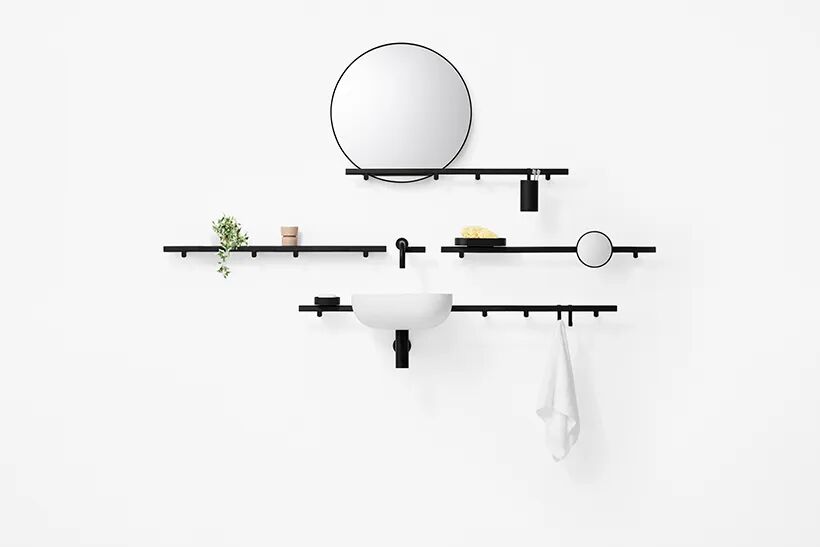 水平延伸的基本形式是“酒吧”,可用作门把手、毛巾架或架子的支撑件。平面允许附加物,如托盘、容器、镜子、杯子和皂液器安装方便且可靠。预计这些物品不仅可用于浴室,还可用于壁橱、玄关、厨房和家中的其他区域。