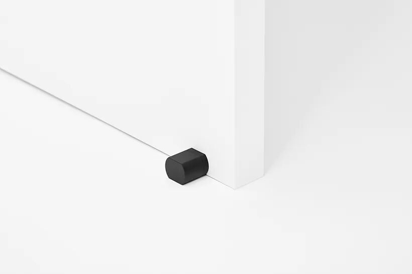 Same design rules are applied to elements like door handles, rotating door locks, doorknobs, door stoppers, and toilet paper holders. The rotating lock is designed such that a red color naturally appears when rotating the piece to be locked.