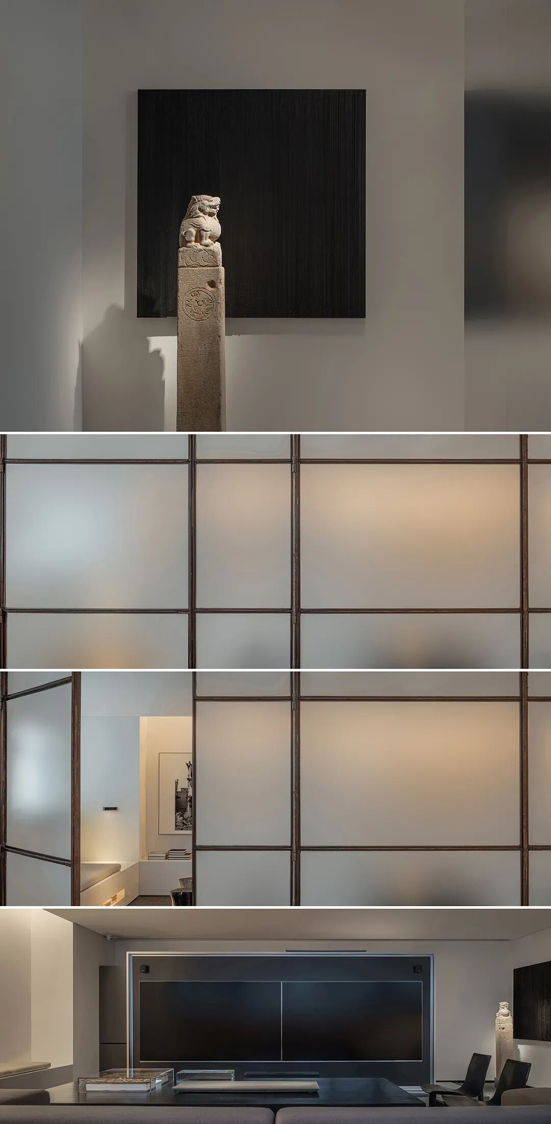 在这个居室中缔造出的是一个退居深隐的宅空间。无论是极简的设计表达,还是将烟火气的驱散,都在营造一个静谧安然的所在。