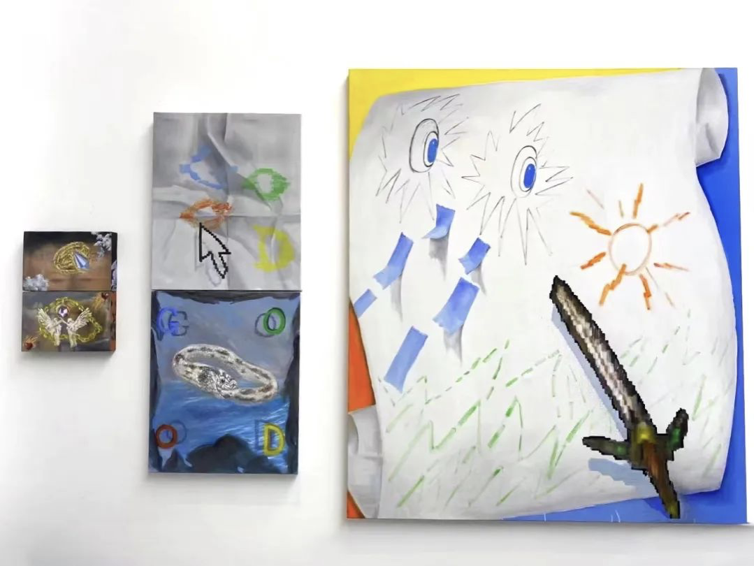 吴凌昊生于1997年,很多真正初期的游戏形象和文化都发生在他出生之前的那些年中,所以可能在他对此的认知并不明确。但尽管如此,在《附魔》系列中,我们还是得以见到一个像素化的宝剑形象,其像素化的粗糙程度基本属于90年代游戏制作水平。但即便是这样一个出处不明的像素化宝剑,也可以唤起观者心里属于那个时代的乡愁。虽然乡愁不是吴凌昊创作的核心母题,但在他的一些作品中已经对乡愁展开了探索和考察。这一点会在他今后的作品中更加明显。