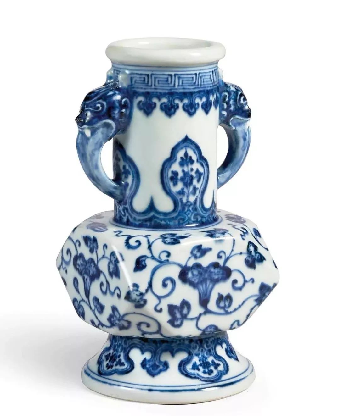 清雍正 青花牵牛花纹折方瓶(80-120万)