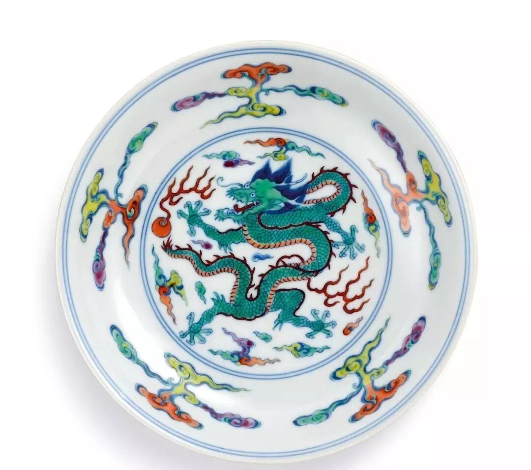 清雍正 斗彩灵芝云龙纹盘(120-180万)