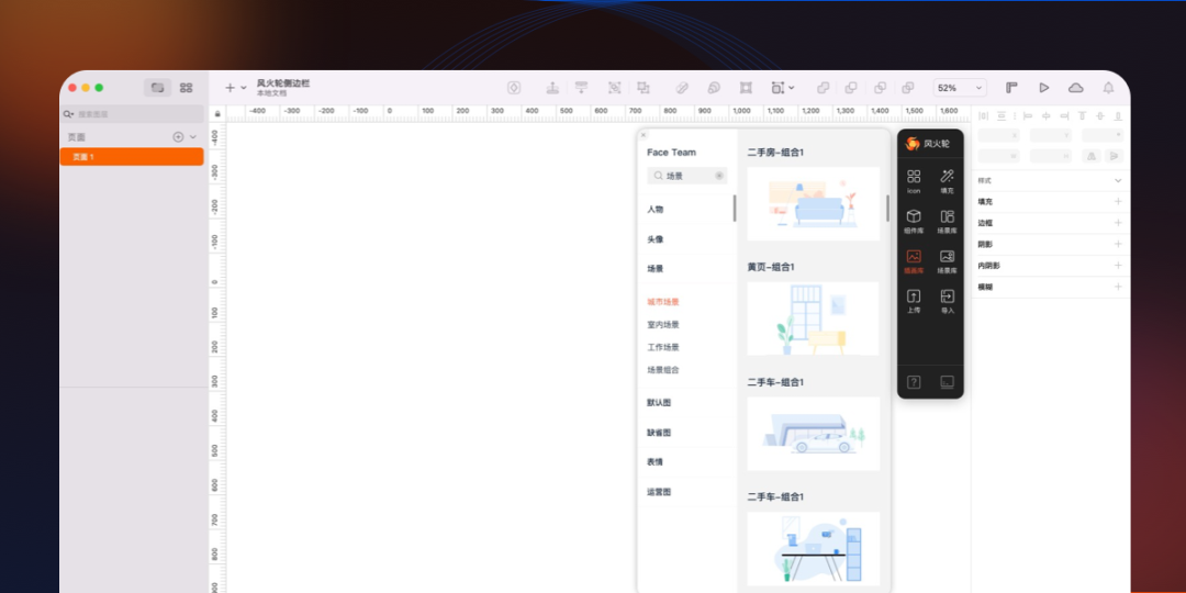 1)插件承载各类设计资产:插件能够承载公共设计资产和个人设计资产,快速查找并拖拽使用。
