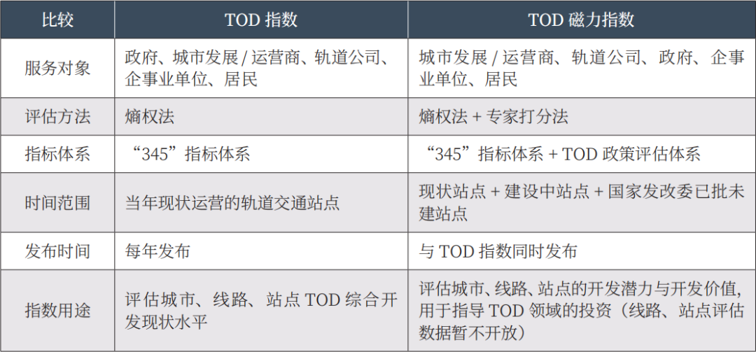 中国城轨TOD指数与城市TOD磁力指数适用评估阶段