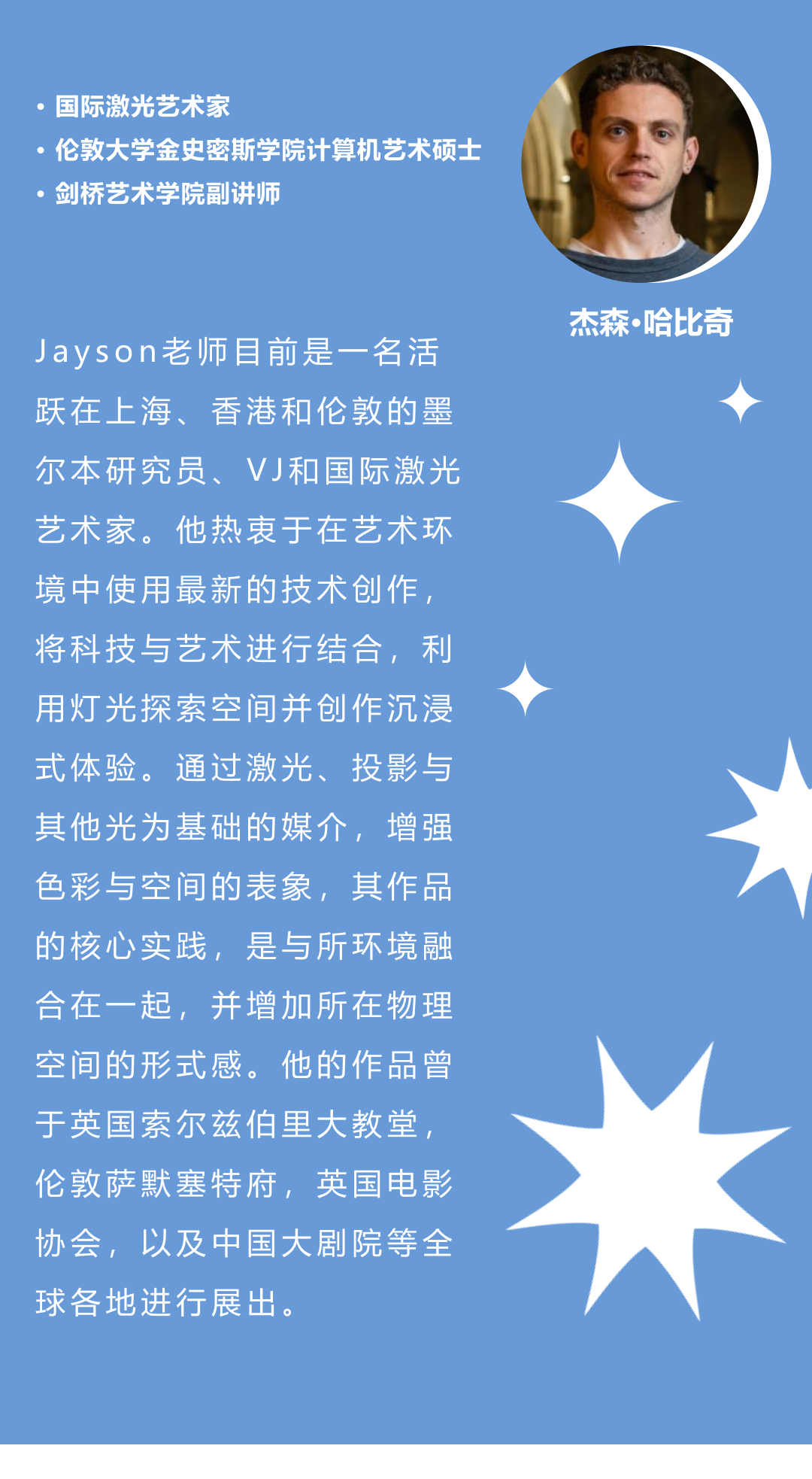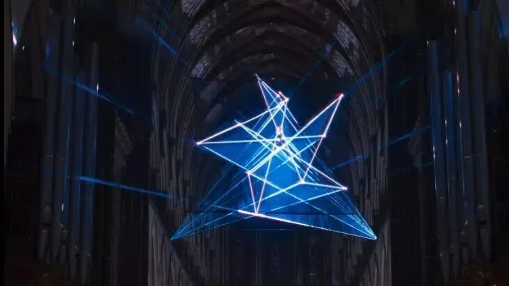 制作互动激光艺术作品,掌握激光的原理和使用安全事项,运用DMX和代码控制激光机和烟雾机