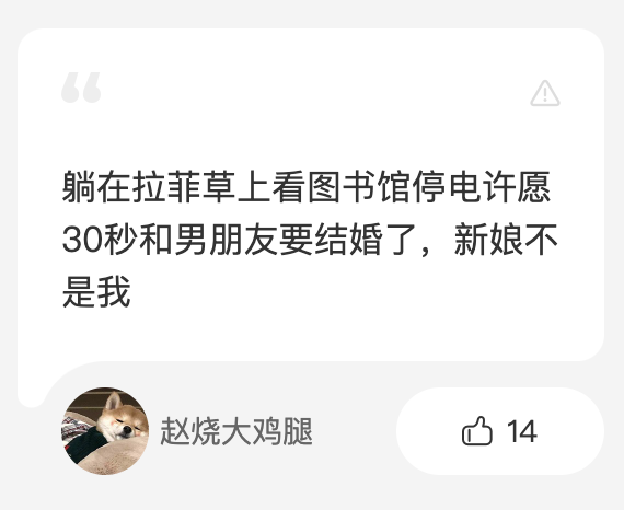 *小Z说:「图书馆停电许愿」又是一个来自真实案例的梗,指女生的男朋友和其他女孩子没有边界感。在女生过生日闭眼许愿的时候,收到另一个女孩子的消息说图书馆停电了很害怕。最后女生说我不知道我闭眼许愿的那30秒你是在规划和我的未来还是担心图书馆里的她。