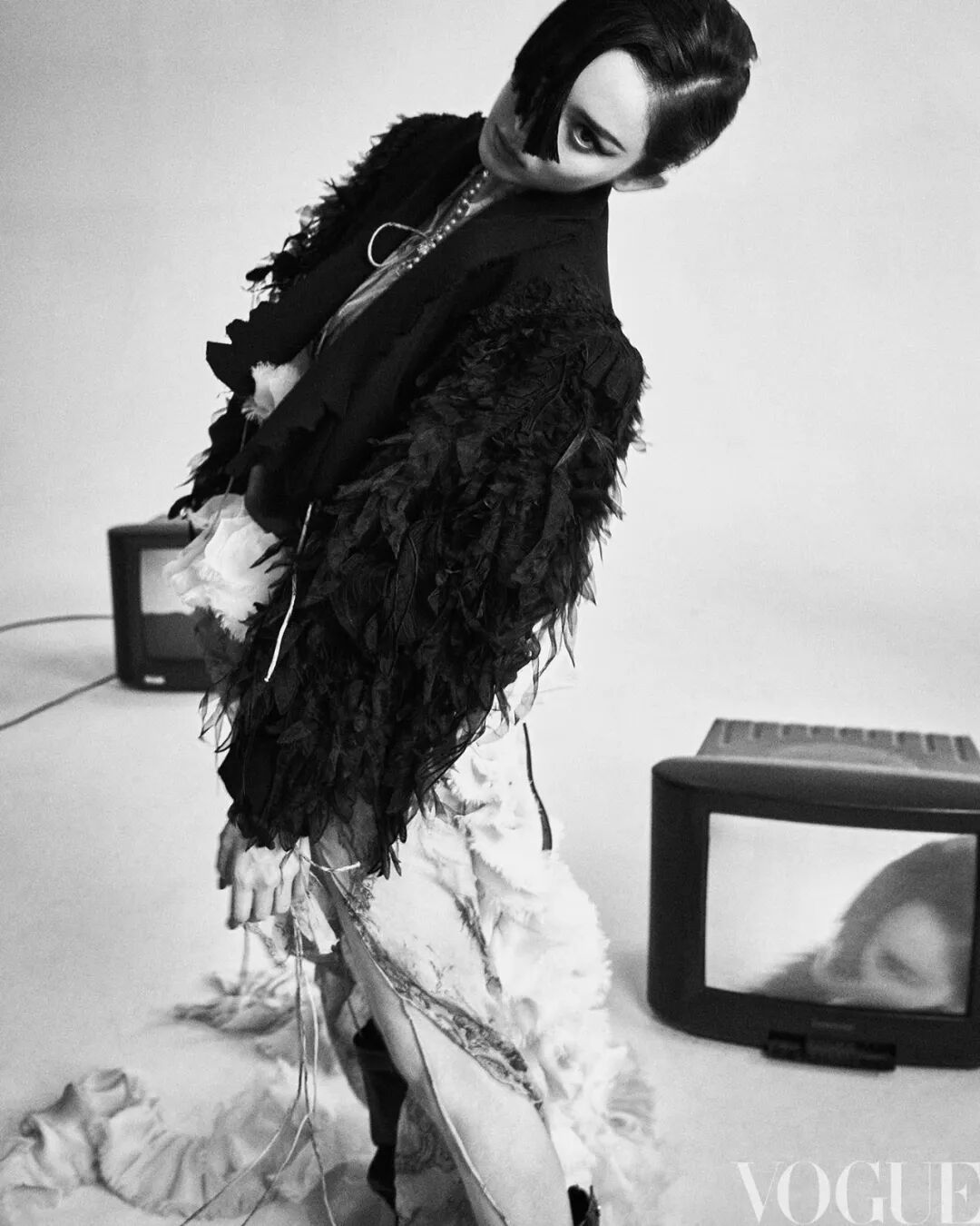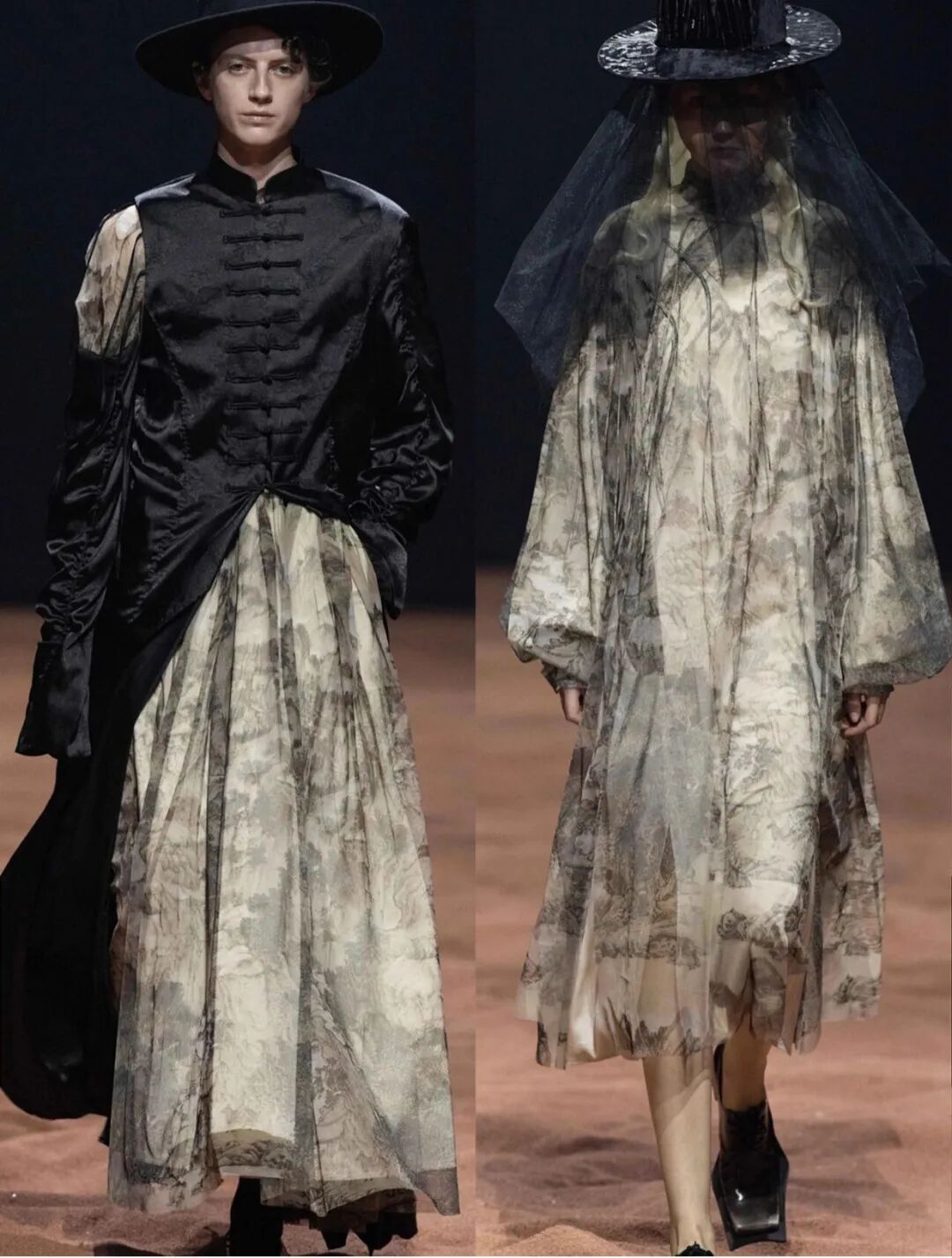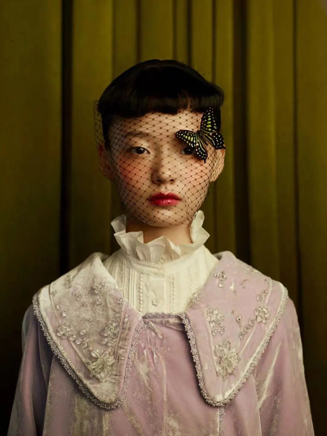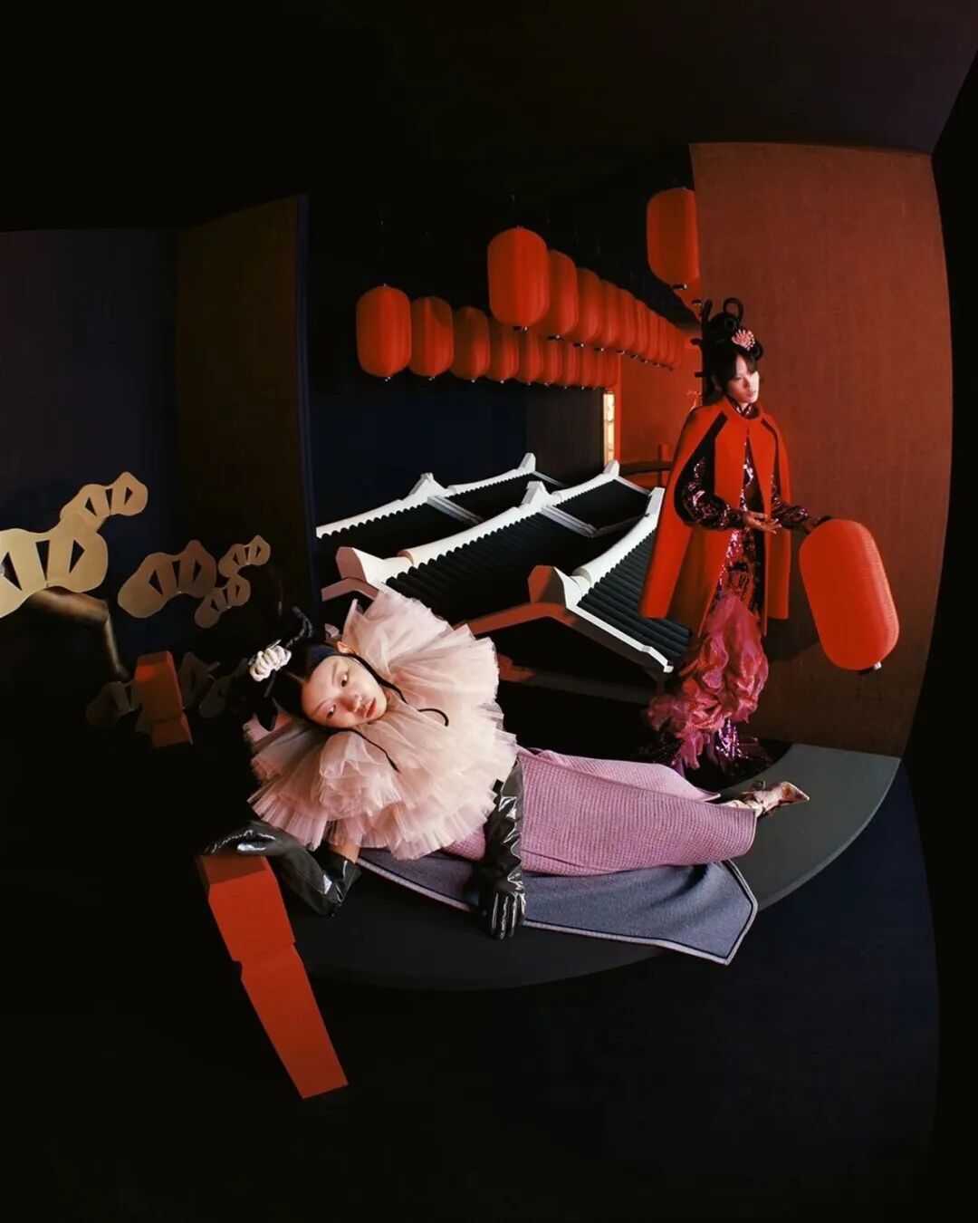 系列的重点也放在有限和无限的冲突中,被限制的确定性和冲破限制的开放性是有趣的尝试。无论是趋于暗黑戏剧化夸张的钉珠、流苏、束胸设计,亦或是从古典花卉纹样、旗袍、汉字中提取的中式设计元素,BAN XIAOXUE 无不作出了相较于以往颠覆性的全新尝试。