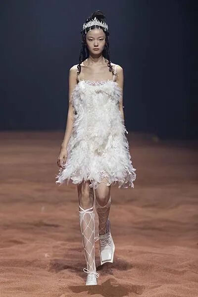 后来,由于在面料和工艺方面已经有了相当的经验积累,BAN XIAOXUE的团队开始重点精进创立之初的短板:款式和颜色,大胆尝试不同的廓形设计和元素,秀场的视觉上整体变得张扬多了,产品的艺术感也越来越强,而且每一场秀都带有浓厚的戏剧气息。原来这一切是刻意为之的策略,不得不佩服班帮主的商业头脑和运营能力。