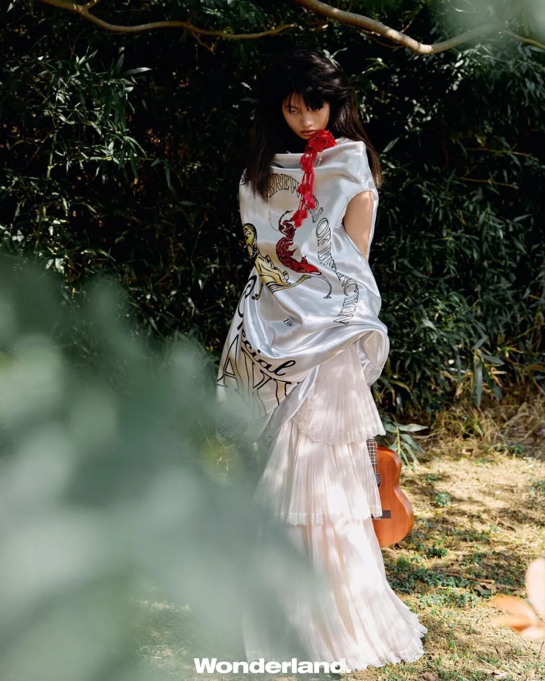 但不变的是对自然精神的尊崇,和品质的坚持,这件手工铃兰钉花凝雾丝连衣裙,真丝材质,轻薄通透,布面经过洗水处理呈现自然微皱感。手工钉花、手工拧皱,每件衣服都只能手工拧无法用机器替代,每朵花都会随着力度和方向的不同呈现出不同的效果。裙身描绘的铃兰,寓意“幸福归来”我们歌颂这份春的礼物,传递馥郁静谧的春之气息。