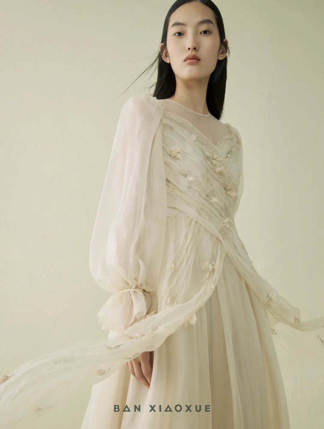 中国新锐设计师品牌BAN XIAOXUE自2012年成立品牌以来,就坚持自然而然的设计,以流动的诗意著称, 近日,其2023 SS望舒系列新品上市,创意总监班晓雪尝试不同的表达方式去诠释和探索新东方风格,塑造一种含蓄、静谧、复古的女性气质。