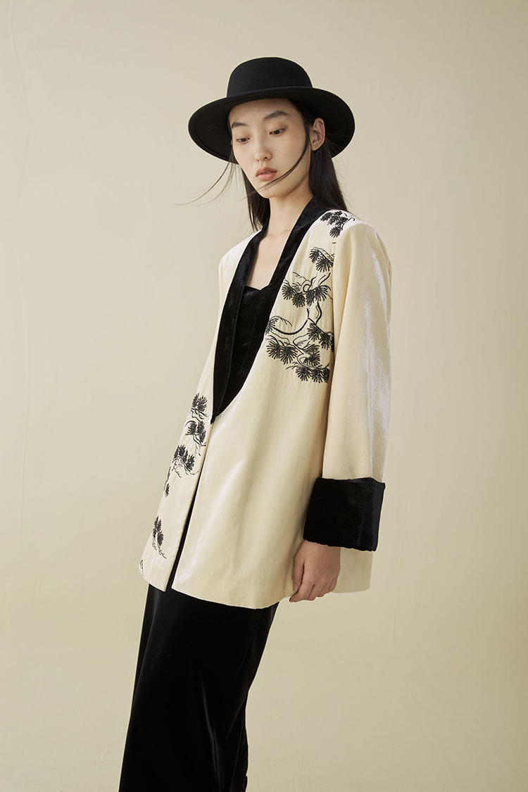 产品提倡天然、环保的健康理念,始终把人放在第一位,注重材质和特种工艺的研发和突破,版形结构多采用立体裁剪的方式,通过对衣服结构和内空间的塑造,追求人衣合一的理想境界。