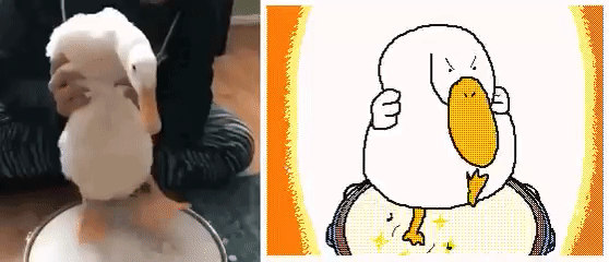 看这些小动物,虽然只是一幅静照,但却被做成一幅幅充满欢乐、童趣、想象力的动图。