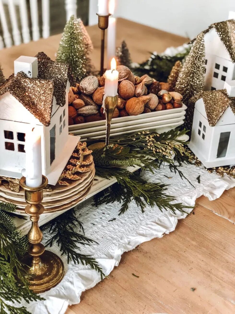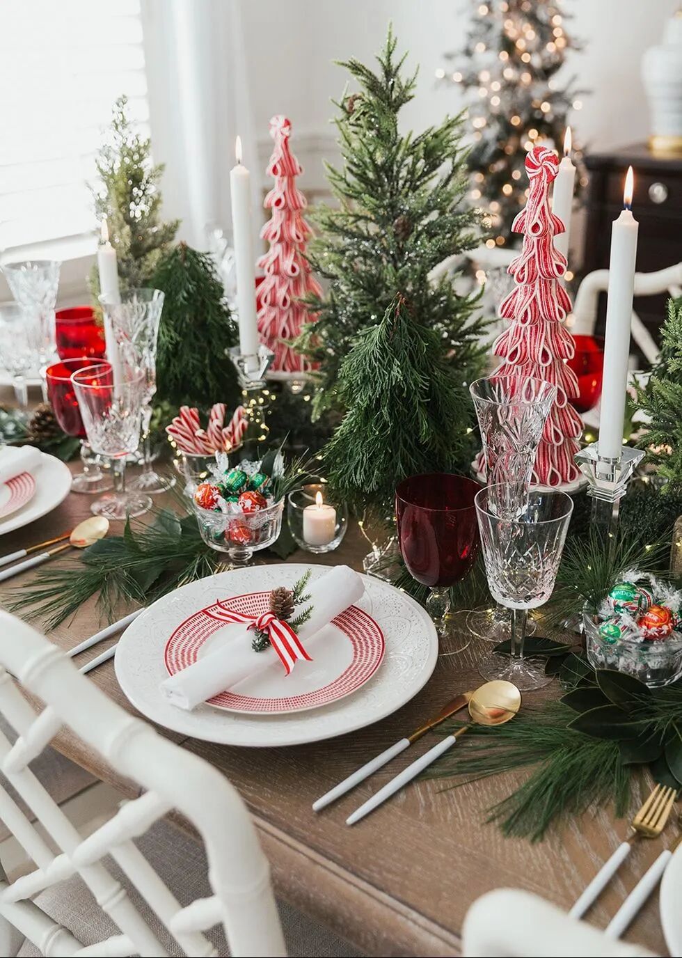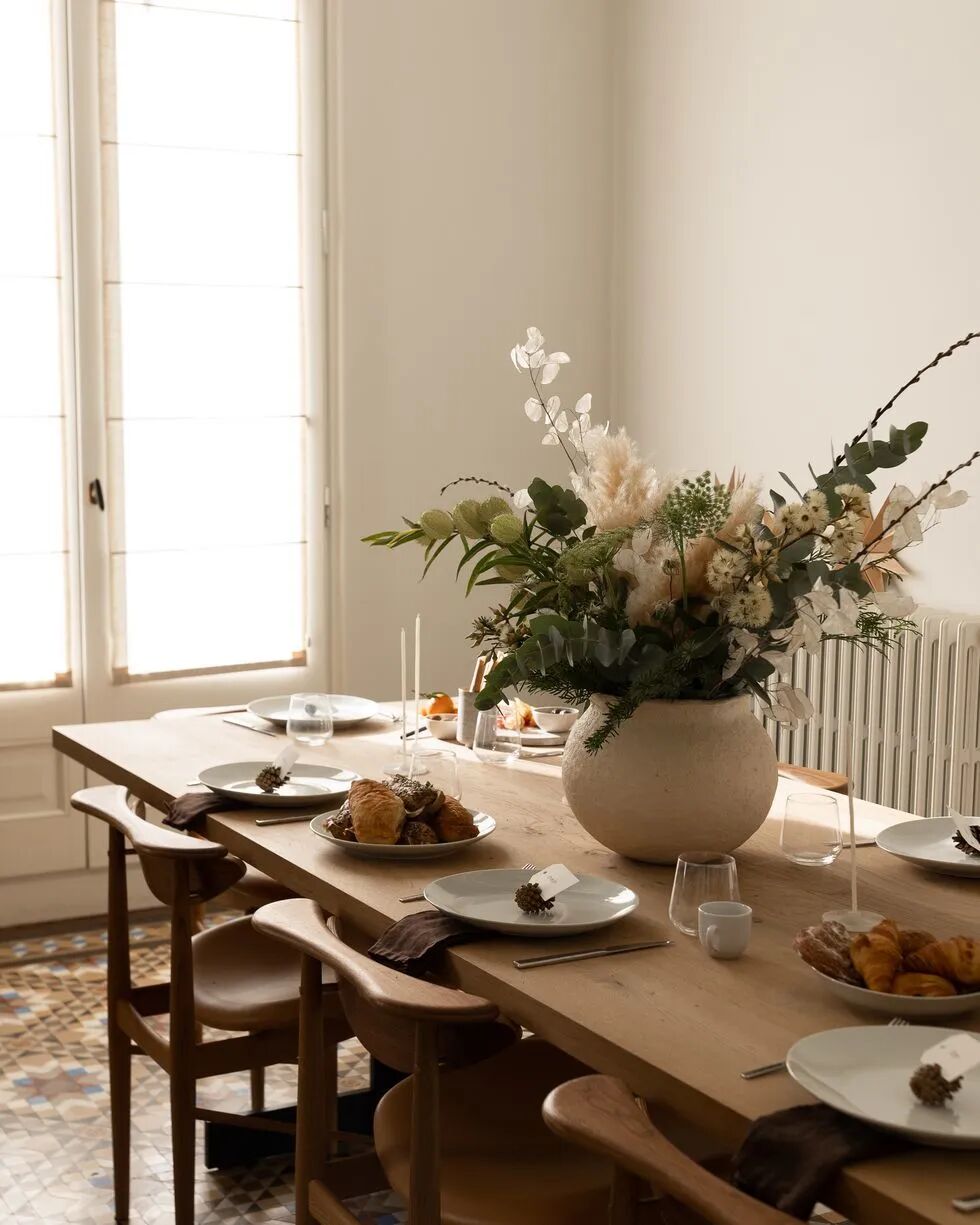 在餐桌上方悬挂一些装饰品和吊坠,将家中的的圣诞氛围提升到新的“高度”。或者在桌面摆放一盆适合家中氛围的花或者树,用额外的饰品、干花、枝条点缀餐桌,创造充满节日气氛,同时又温暖而温馨的就餐空间。