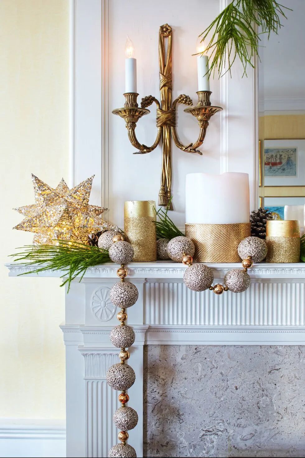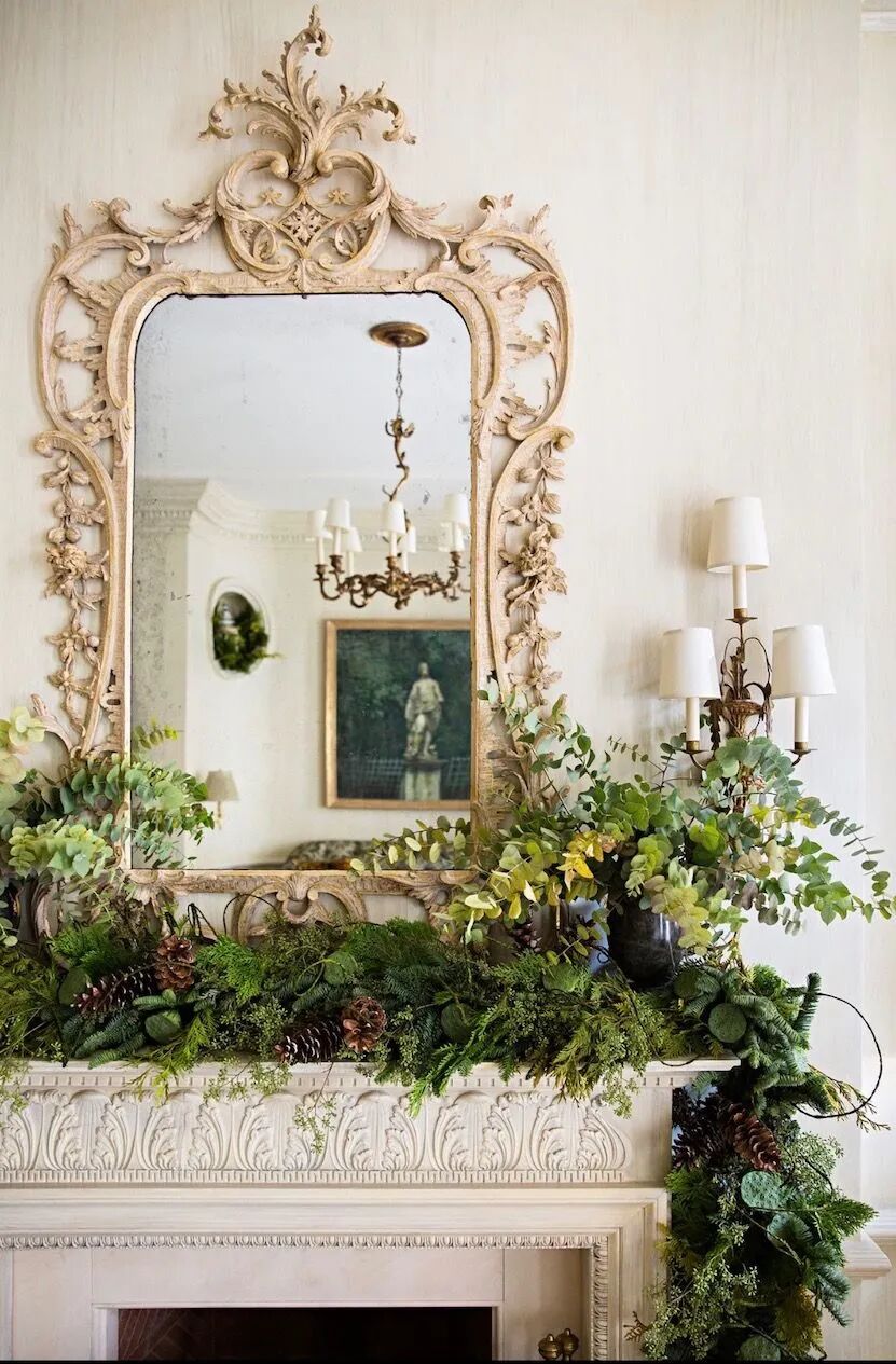 一个简单的方法来填补壁龛上的空白空间是利用你现有的装饰。无论是树枝、花环、甚至是书籍、装饰画、水果,都可以摆放在一起。