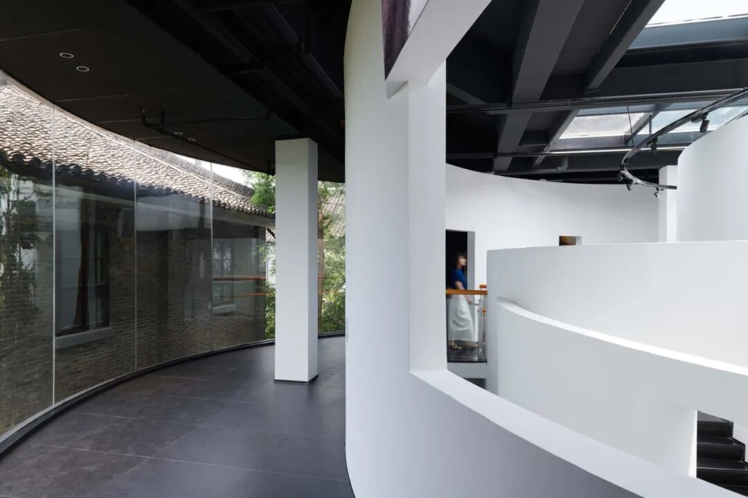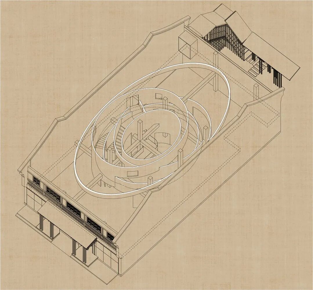 在枇杷博物馆中的挑战是:由于原有建筑结构的存在,环形中庭的建立并非从零开始,它是被既有结构所限制的,它需要建立在一个被结构的秩序和尺度所定义的环境中。
