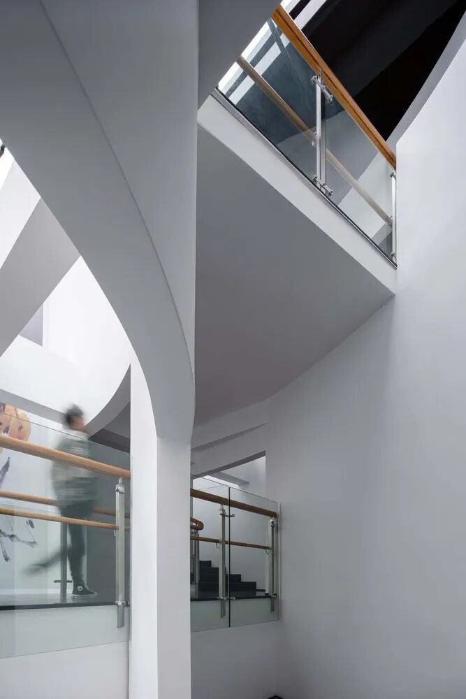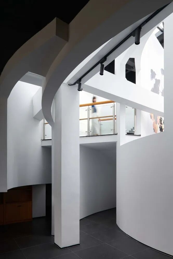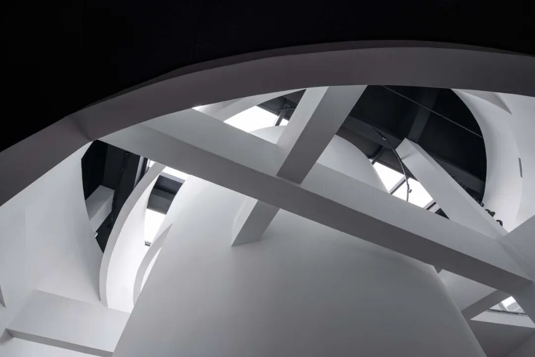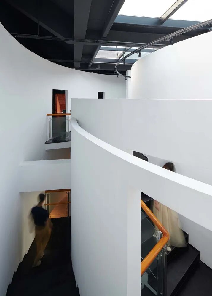 在看似“埃森曼式”的结构中,老结构与新构造被漆上共同的白色,进而单纯地保持其在几何形态上的碰撞和辨别力,建立起一种“白描”式的纯粹对话,让原有结构的力量感和新结构的力量感被同时强化了出来。