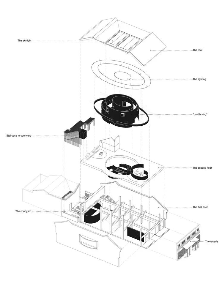因而在参观的过程中,“重环”复合了一系列推进与远离的过程,又通过消失与再现建立起了一种记忆上的回溯, 便形成了一种独特的,熟悉而陌生的空间感受。