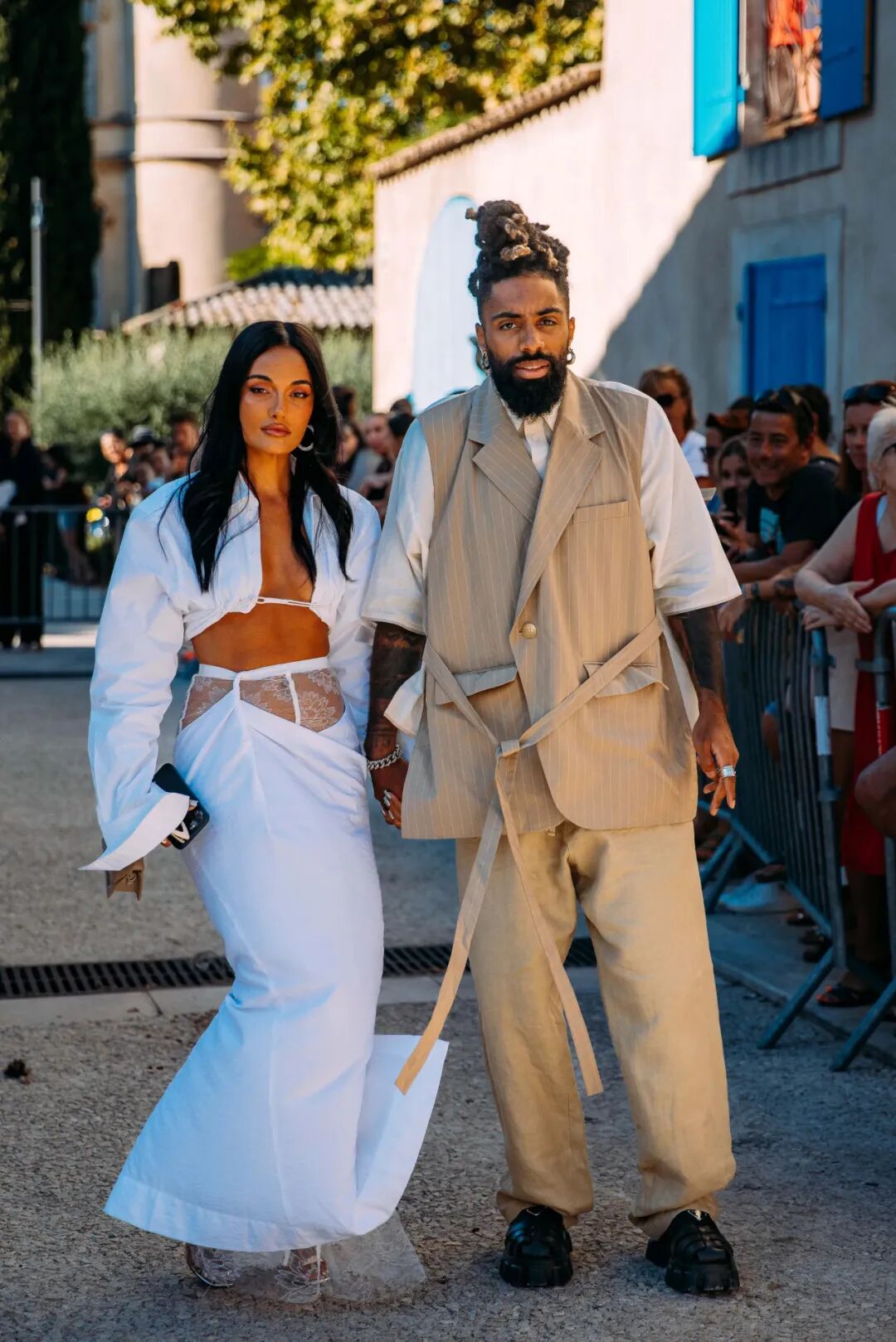 在美到无法形容的南法,也是Jacquemus从小长大的地方,Jacquemus 在奶奶 Liline 的陪伴下入场,Marco Marstri 则是与母亲Carherine Maestri 一起开着敞篷车入场,众明星好友身穿Jacquemus系列出席捧场。