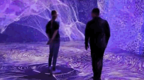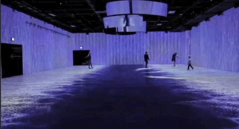 参观者来到这个舒适区,也许还没有答案,但是,每个人都可以在沉浸的氛围中思索。看着水波在墙上蔓延,在地板上流淌,他们静静地观察着水流方向,感受着水的柔韧与力量。蓝色的波纹,带来片刻安静,让大家的思绪慢下来,倾听内心的声音。