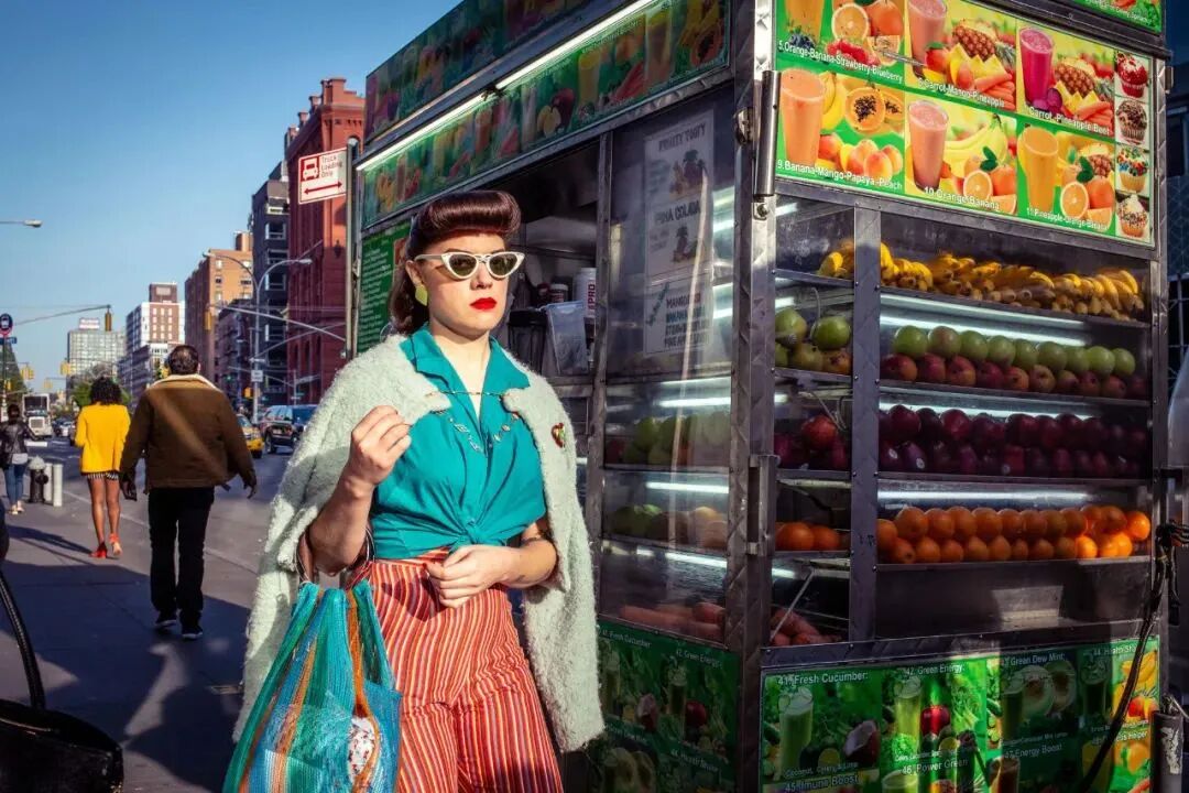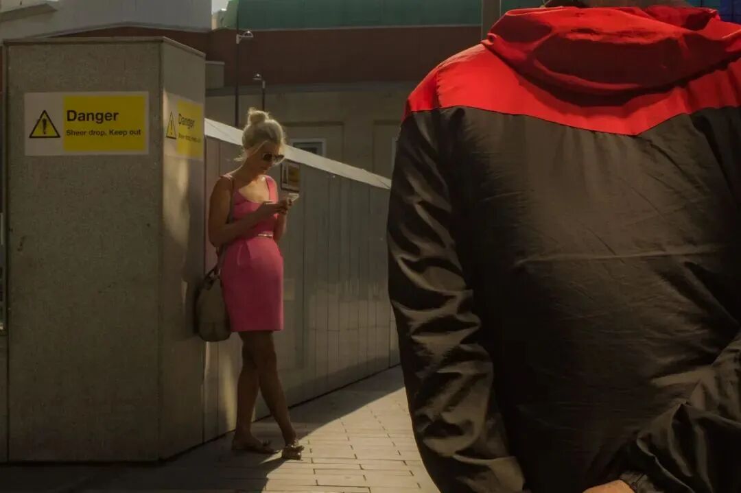 人物所在的位置和背后的色彩形成了一个强烈对比画面极具形式感。对摄影师而言街道的色彩和人们的生活构成这个舞台,而摄影师顺势记录下来了而已。