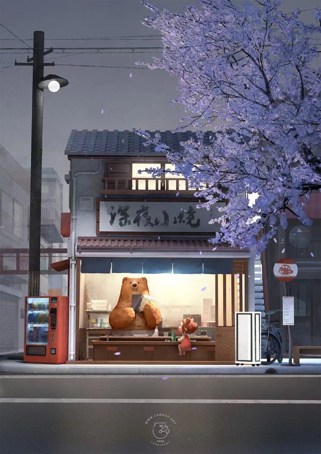 因为一直喜欢宫崎骏,于是就想做一些能治愈人心的内容,下了班的时候开始学习画画,开始了自己的“创作”。一开始画的很差,但是坚持一步一步的走,将头脑中想要表达的逐渐具像化,5年后小熊就诞生了。这个期间有幸认识了祝凯老师,在祝老师油画工作室开始从零学习架上绘画,经过几年的学习逐渐打下了基础,才开始有能力将自己头脑中构想的世界用画笔记录下来。这一路虽然走的很慢,但是回头看去已经走出了很远的距离了。
