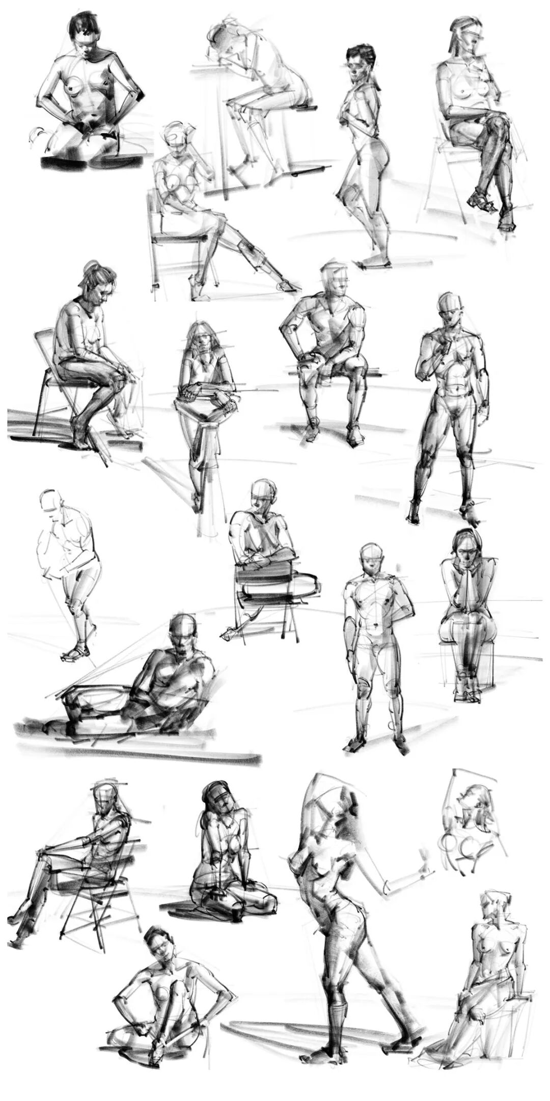 不过对于画插画又不一样一些,可能有很多人像我一样,开始自学是在电脑上或者ipad上,单纯的掌握软件的一些技法或者流程不能解决太多问题。要打出一杯水,得先保证自己有一桶水,个人觉得要解决绘画基础问题还是得回归架上绘画,回到纸面或者油画布上,从最基础的光线概括和固有色概括开始学习,这个过程需要耐心练习,没有捷径。目前画室的同学都有画速写的习惯,从他们身上学到了很多。