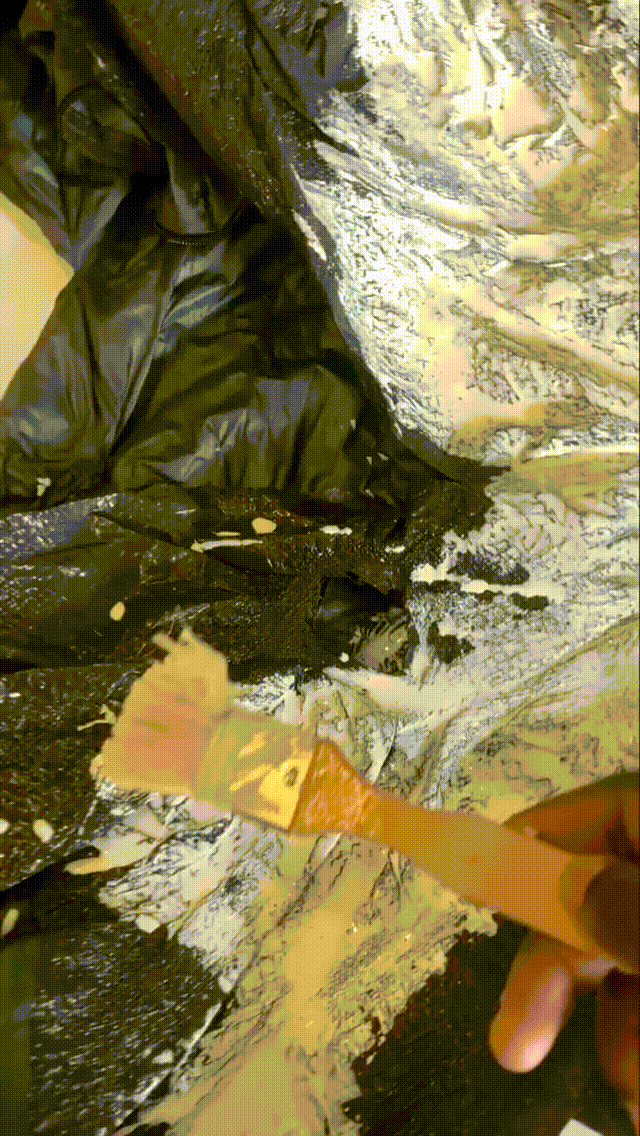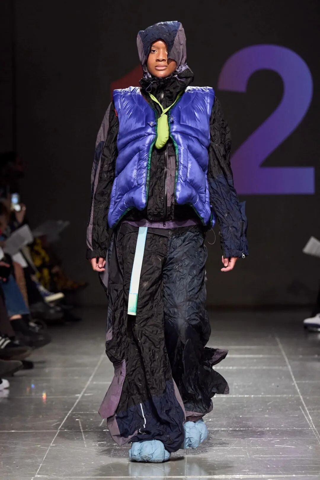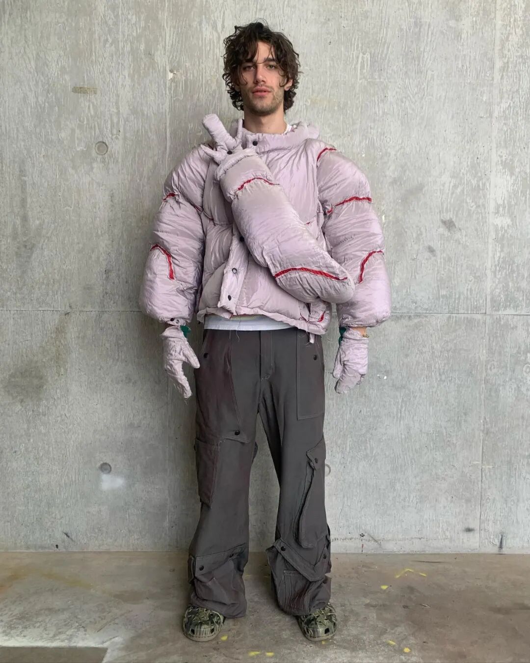 随后他将造型融入主题,用乳胶、废泡沫和金属丝制作了真人大小的龙翼,以及回收的菌丝体质地服装。