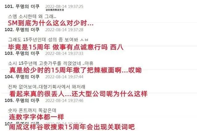 这也让很多少女时代的韩国粉丝感到不满,认为是SM娱乐毁了少女时代的15周年……。