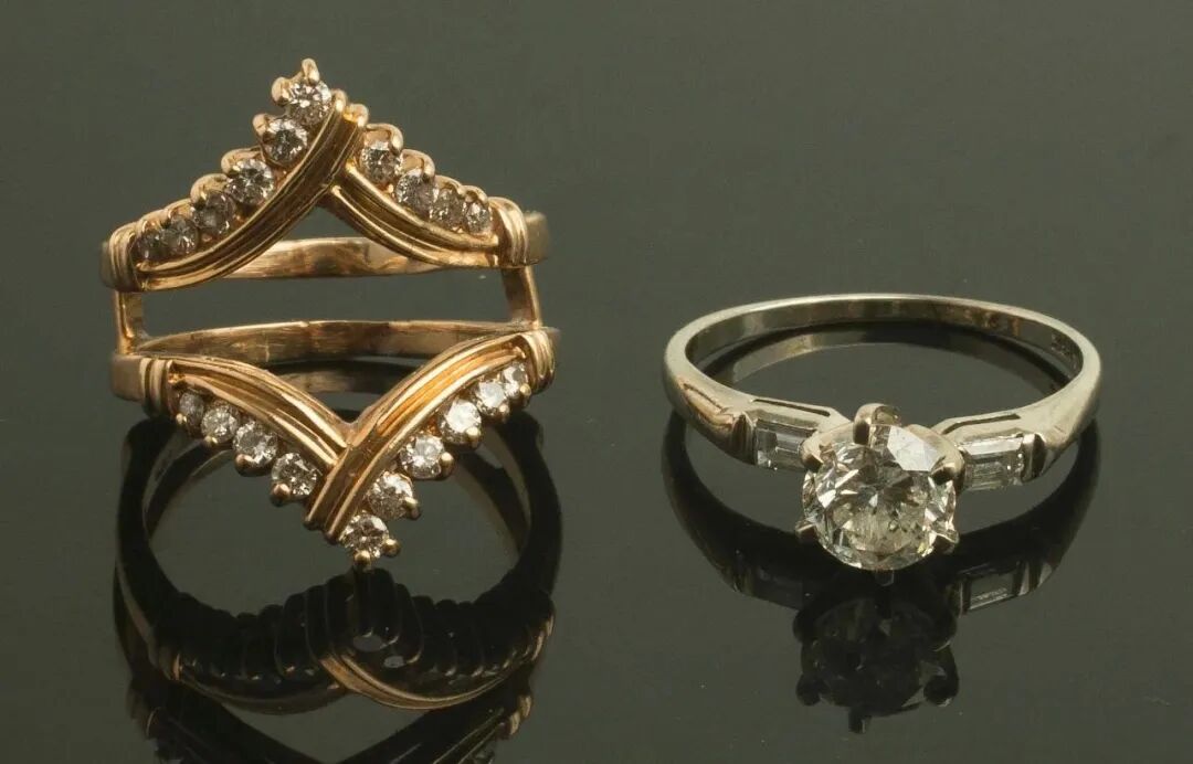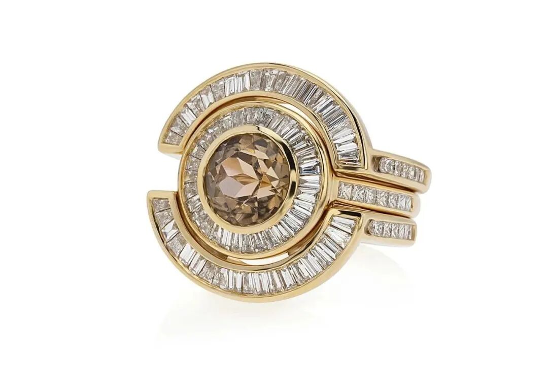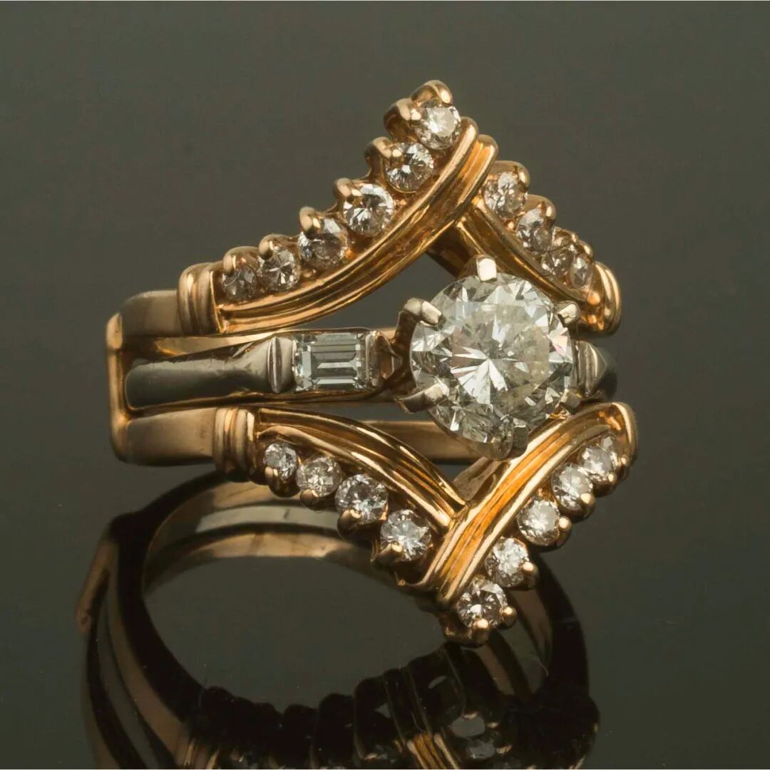 这种戒指的诞生,是在1920年代左右。当时,人们在参加派对时非常喜欢戴十分华丽的戒指。如果买很多个有大宝石的戒指,哪怕是比较便宜的宝石,总价也会不菲。于是人们想到了给结婚钻戒上加件“外套”,根据不同场合和服装来更换“戒指外套”。