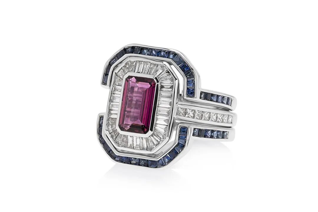 彩色宝石戒指和彩宝夹层式护戒叠套
