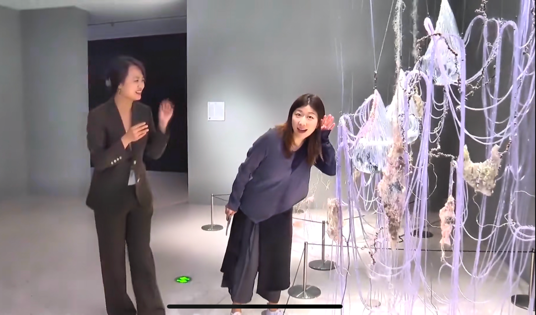 为了帮助观众更好地理解展览,我们和UCCA Lab共同出品了展览概念片《集光片羽》,由王昊楠和柳迪共同导演,不仅将展览的三大主题作为故事主线融入其中,并且将虚拟空间与现实场景相结合,还原数字世界的特点,以推进式的剧情表达并回应展览的主题——“The Pieces I Am”,并特别邀请到吴彦姝、雎晓雯、吴牧野、谢欣舞蹈剧场、重塑雕像的权利共同参与演出。他们化身为Pieces成为“集光片羽”艺术展概念片的一部分。如棱镜般彼此映射,探索着自我并认知着全新的数字生命。通过各自的艺术表达将观众代入其中,完成一场从自在之流到迷雾之城,再到丰饶之海的观展之旅;同时,区别于以往的策展人传统导览,这次还特别邀请了知名脱口秀演员Norah直播开幕现场,以更加口语化和生动性的语言,为在线观众云游导览。而本次展览的展签也非常特别,是抖音的二维码。扫码就能看到由策展人特别录制的导览视频,能够更生动和直接的理解作品。