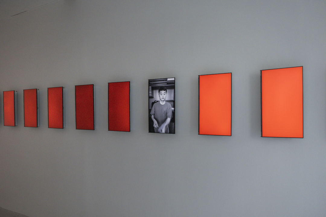 《礼物》由24个屏幕组成,每个屏幕都记录了一位表演者空手传递一件物品或演绎某个事件,并将它作为物品传递到画外的影像。同时,在局域网的控制下,这些屏幕内的影像可以在线性的关系里依次运行。由此,二十四个屏幕所呈现的表演链接成为往复传递的行为逻辑与时间整体。