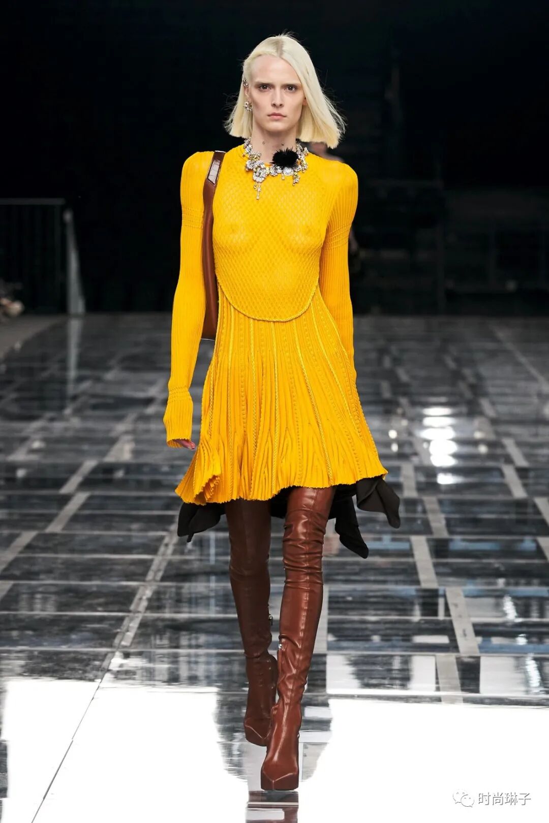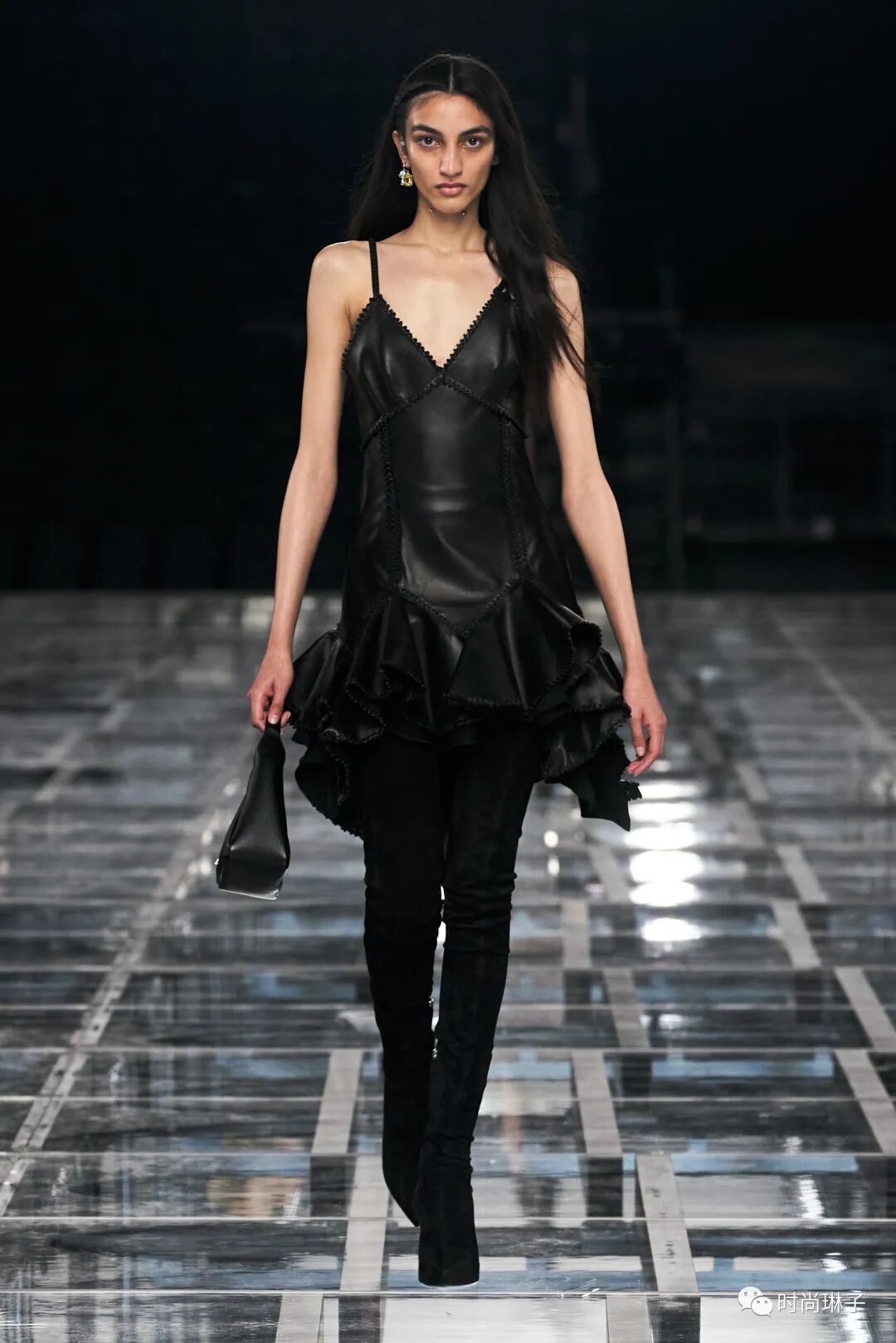 结合荷叶边或褶皱裙摆设计,搭配高腿皮靴,以更酷的都市风格和多彩的色调赋予女性优雅气质。