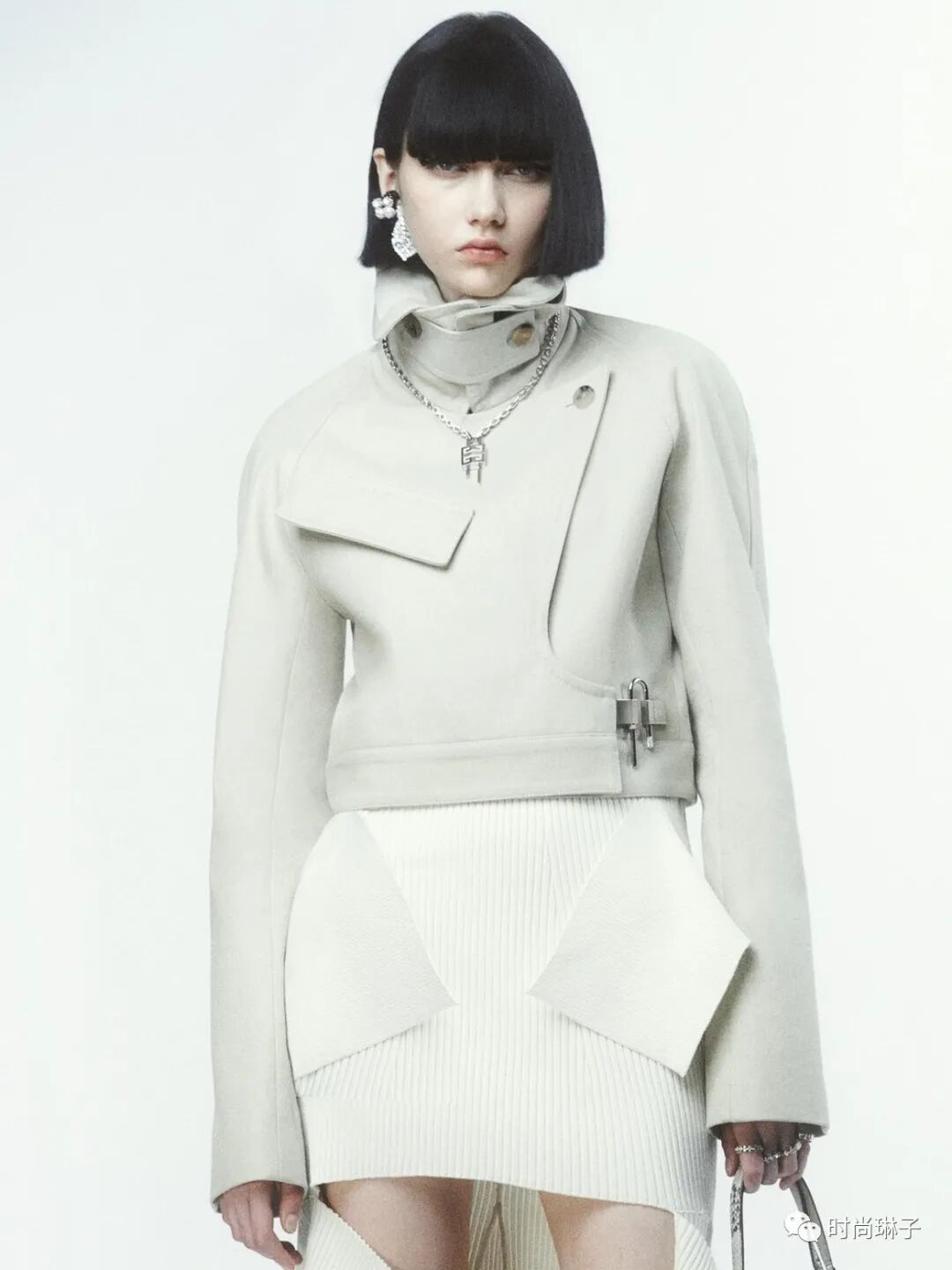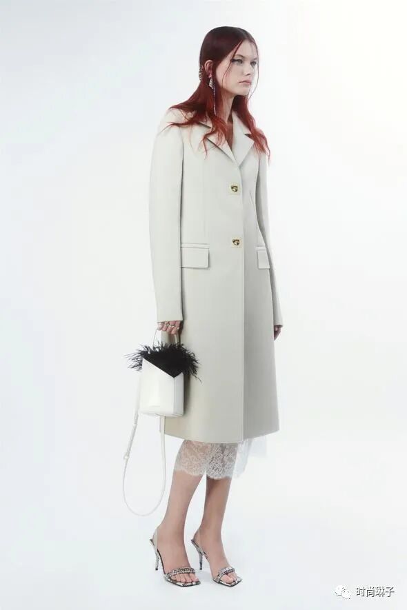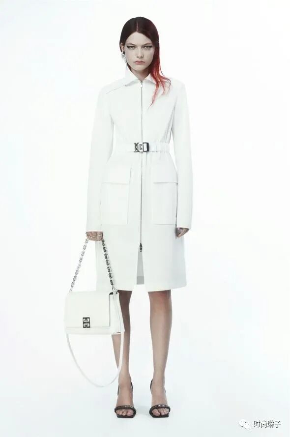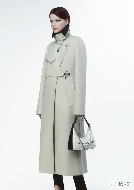 Givenchy纪梵希 2022早秋系列中简洁优雅的单色套装或外套,搭配银色搭扣,营造出无缝美感。