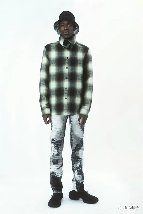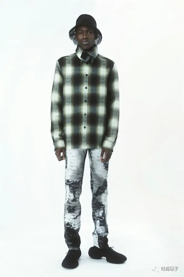 该季的牛仔套装采用漂白、套染、破坏和纱布覆盖,以及激光交织字母等工艺,Monogram图案极具品牌辨识度。超质感的磨破牛仔裤搭配格子上衣,为该系列带来一股街头风。