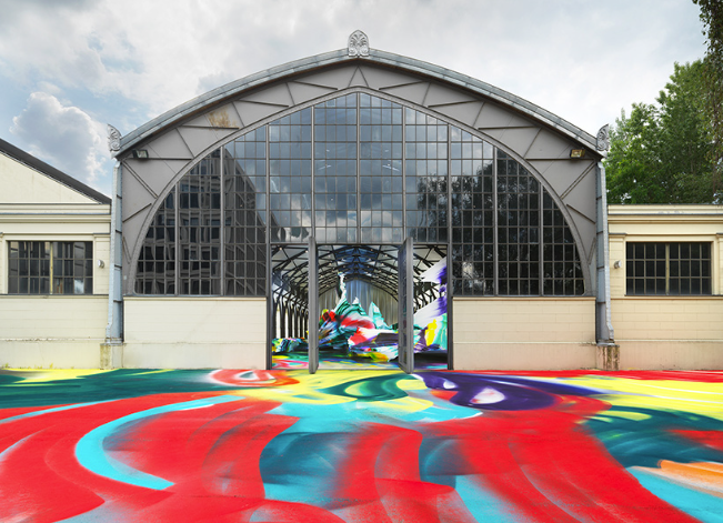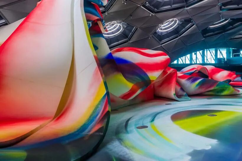凯瑟琳娜·格罗斯 (katharina grosse)用她标志性的大型艺术品之一改造了柏林的一座前铁路大楼。这件名为“不是我们”的作品占据了柏林国家美术馆一部分的汉堡火车站的内部和外部。通过这种方式,这幅广阔的画作以一种破坏现有建筑稳定的宏伟而多彩的姿态无视博物馆空间的边界。