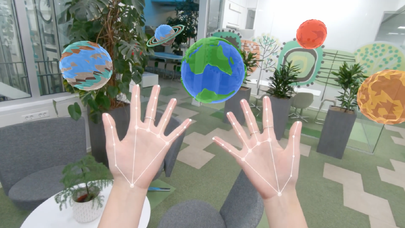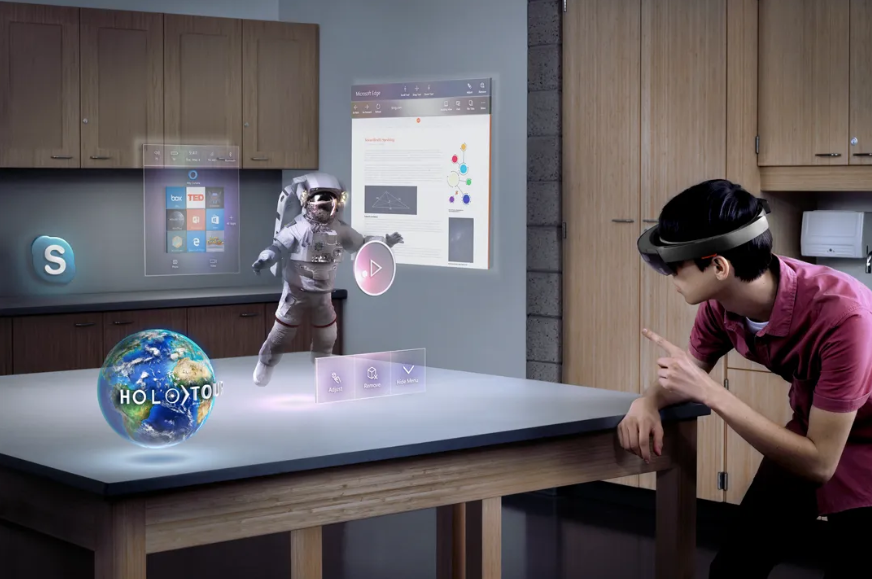 HoloLens可以探测用户视线的焦点所在从而做出一些判断和反应,也可以通过识别用户的手势,如手指轻敲、张开等,来对全息影像进行交互操作,并且HoloLens内置了语音识别功能,用户可通过语音来进行一些操作。