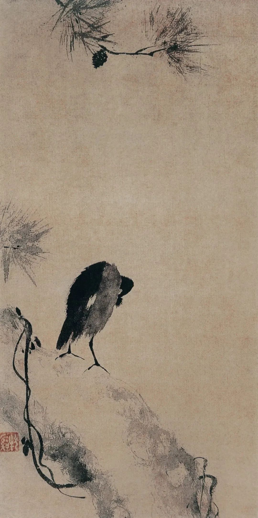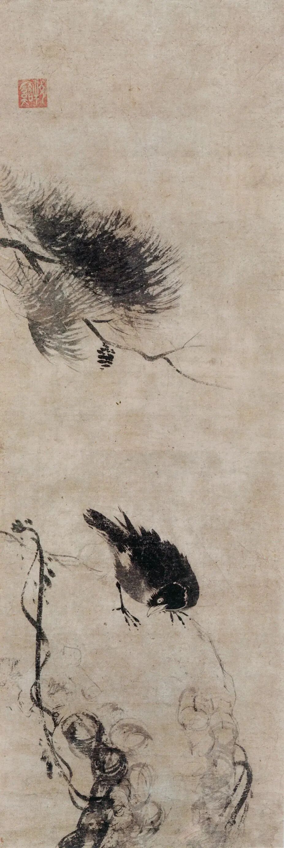 南宋 法常 松树八哥图 39cm×78.5cm